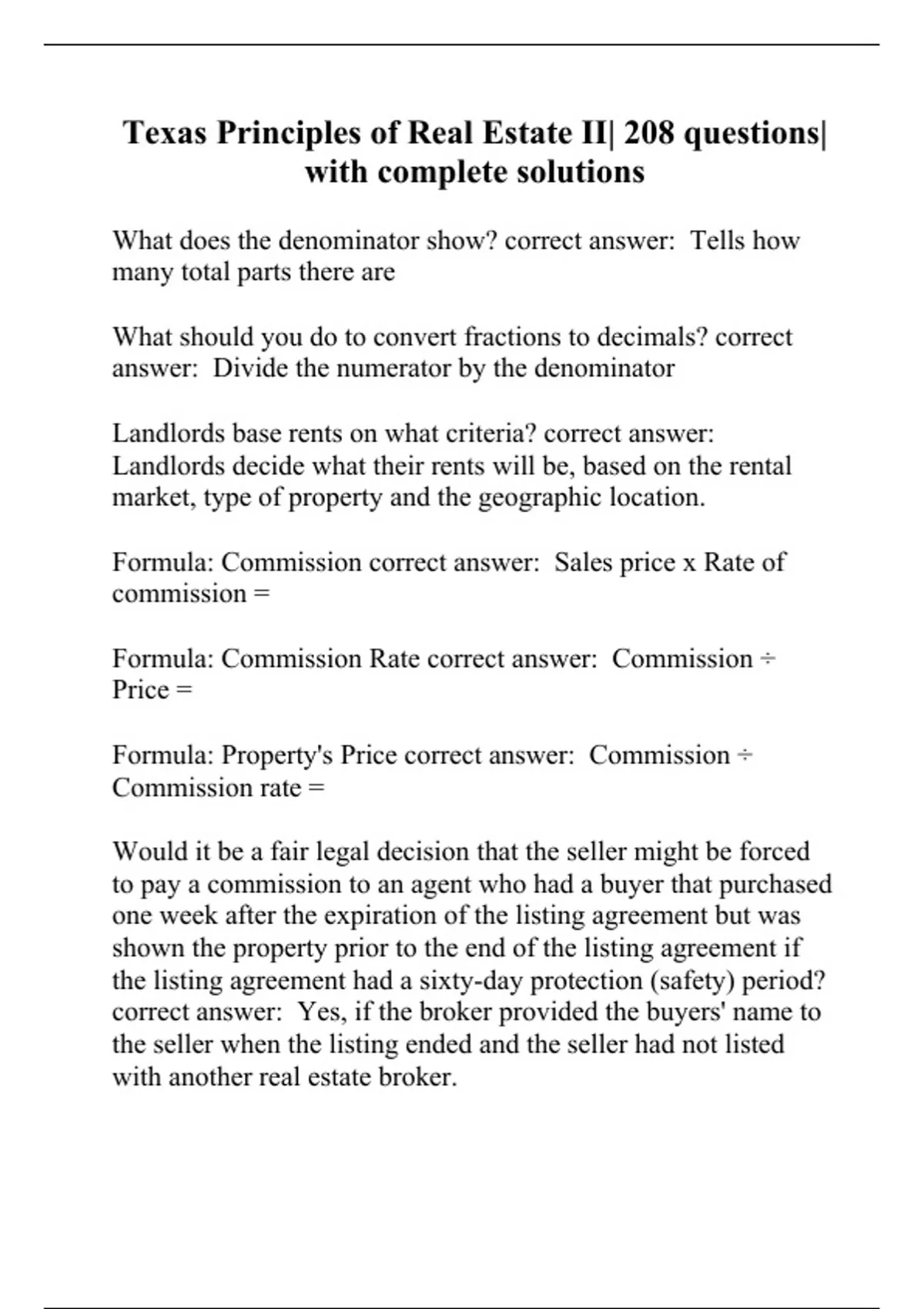 Texas Principles of Real Estate II| 208 questions| with complete solutions