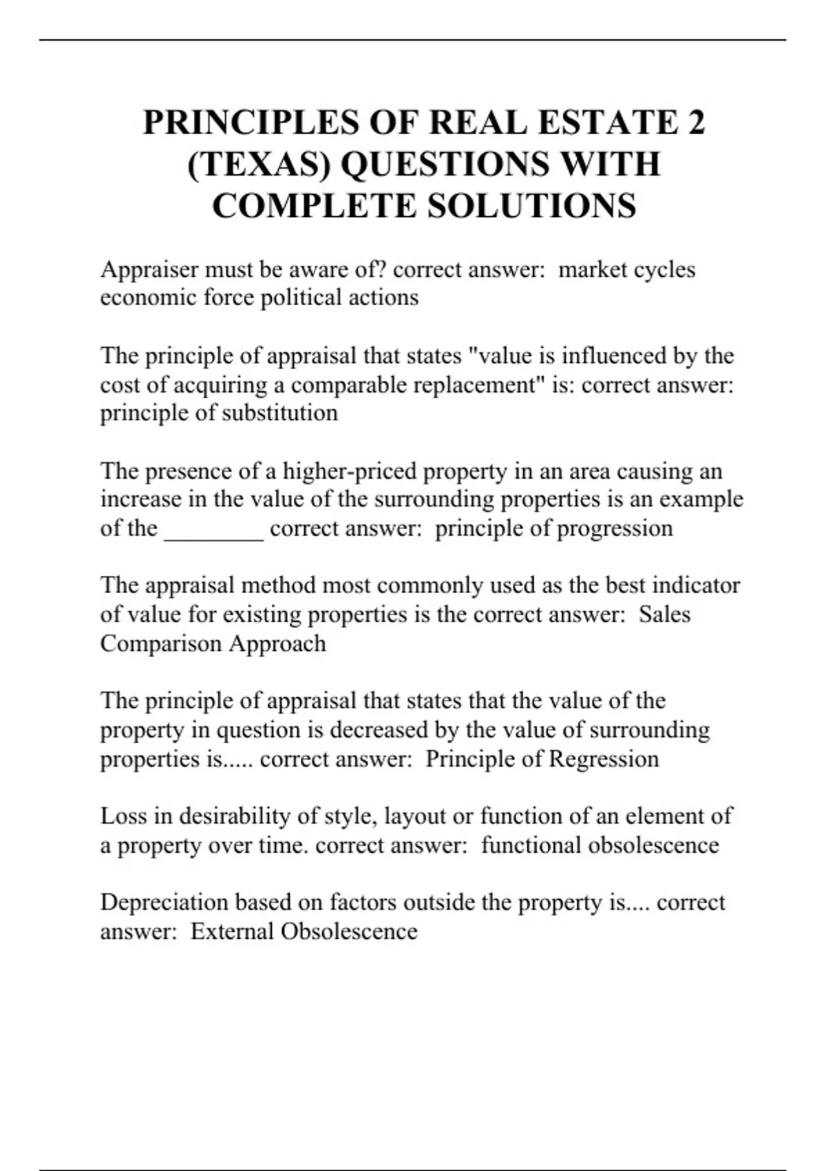 PRINCIPLES OF REAL ESTATE 2 (TEXAS) QUESTIONS WITH COMPLETE SOLUTIONS