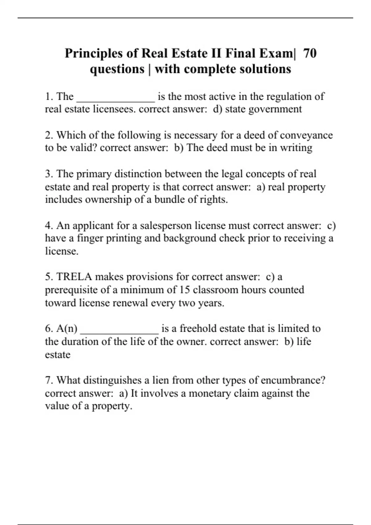 Principles of Real Estate II Final Exam| 70 questions | with complete solutions