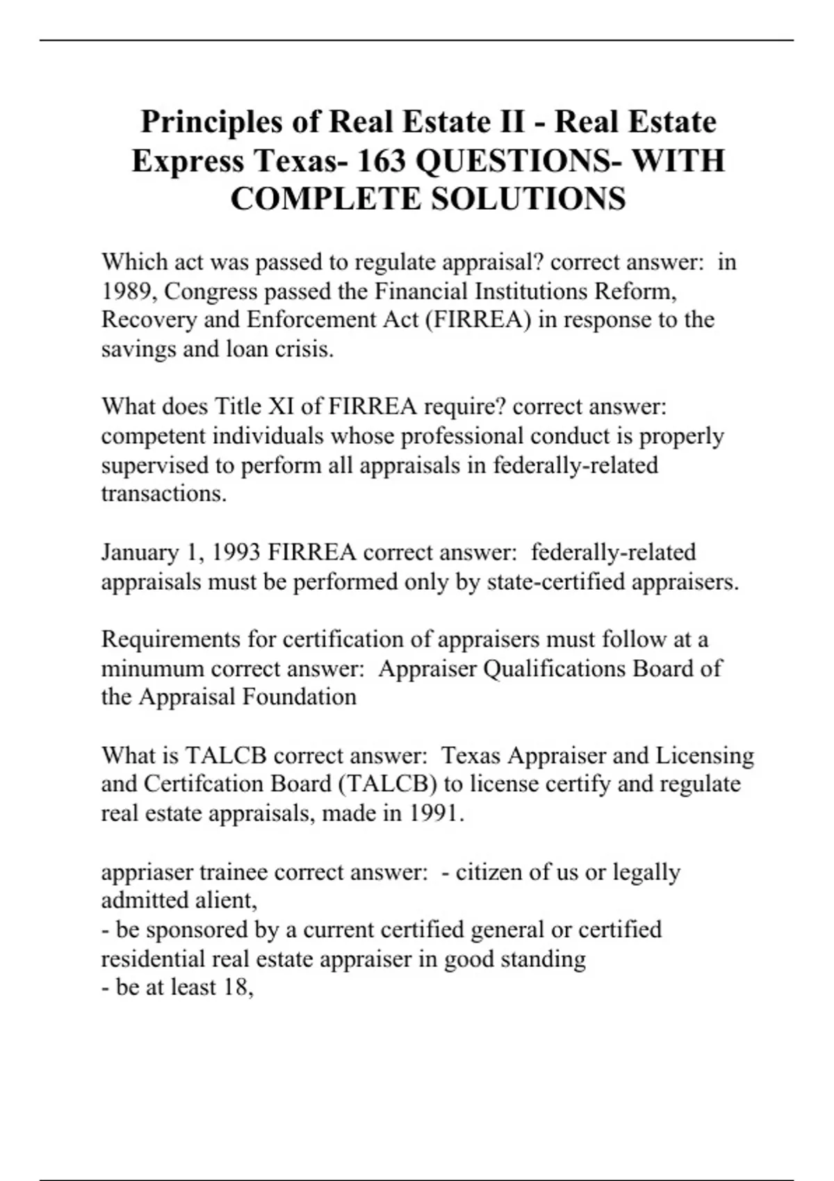 Principles of Real Estate II - Real Estate Express Texas- 163 QUESTIONS- WITH COMPLETE SOLUTIONS