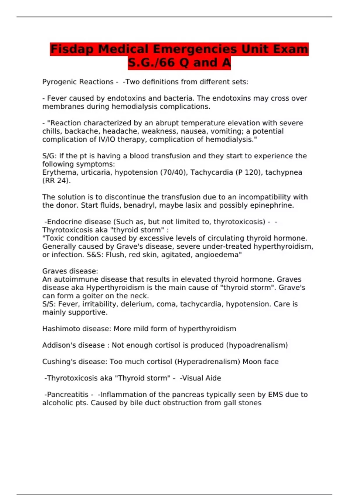 fisdap medical emergencies unit exam sg66 q and