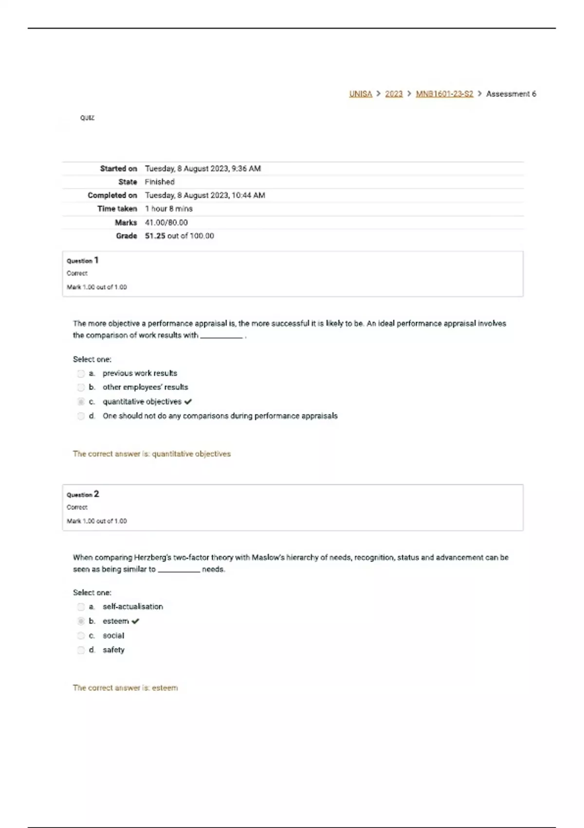 This is ASSIGNMENT 06 of MBN1601, SEMESTER 2 2023 MEMO with Questions. 80 questions with 80 answers