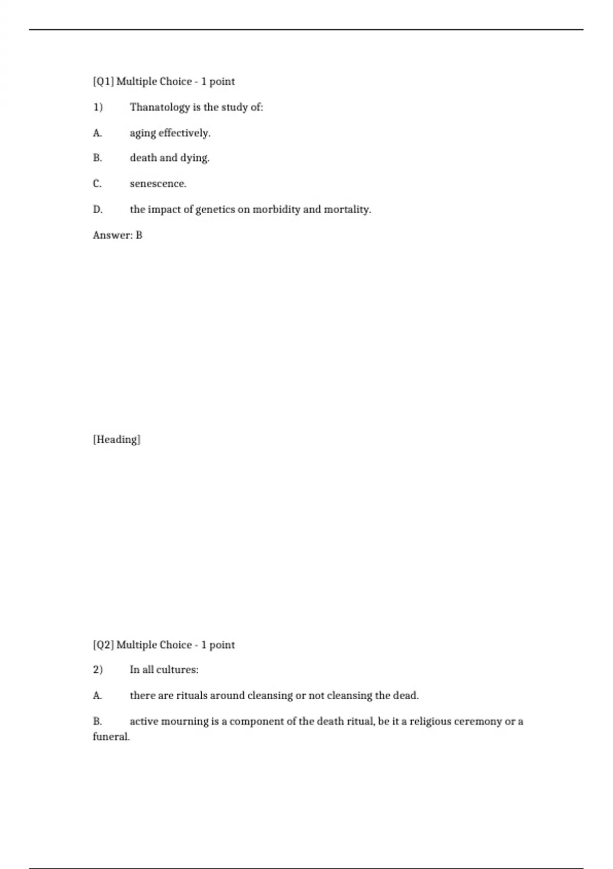 1) Thanatology is the study of: