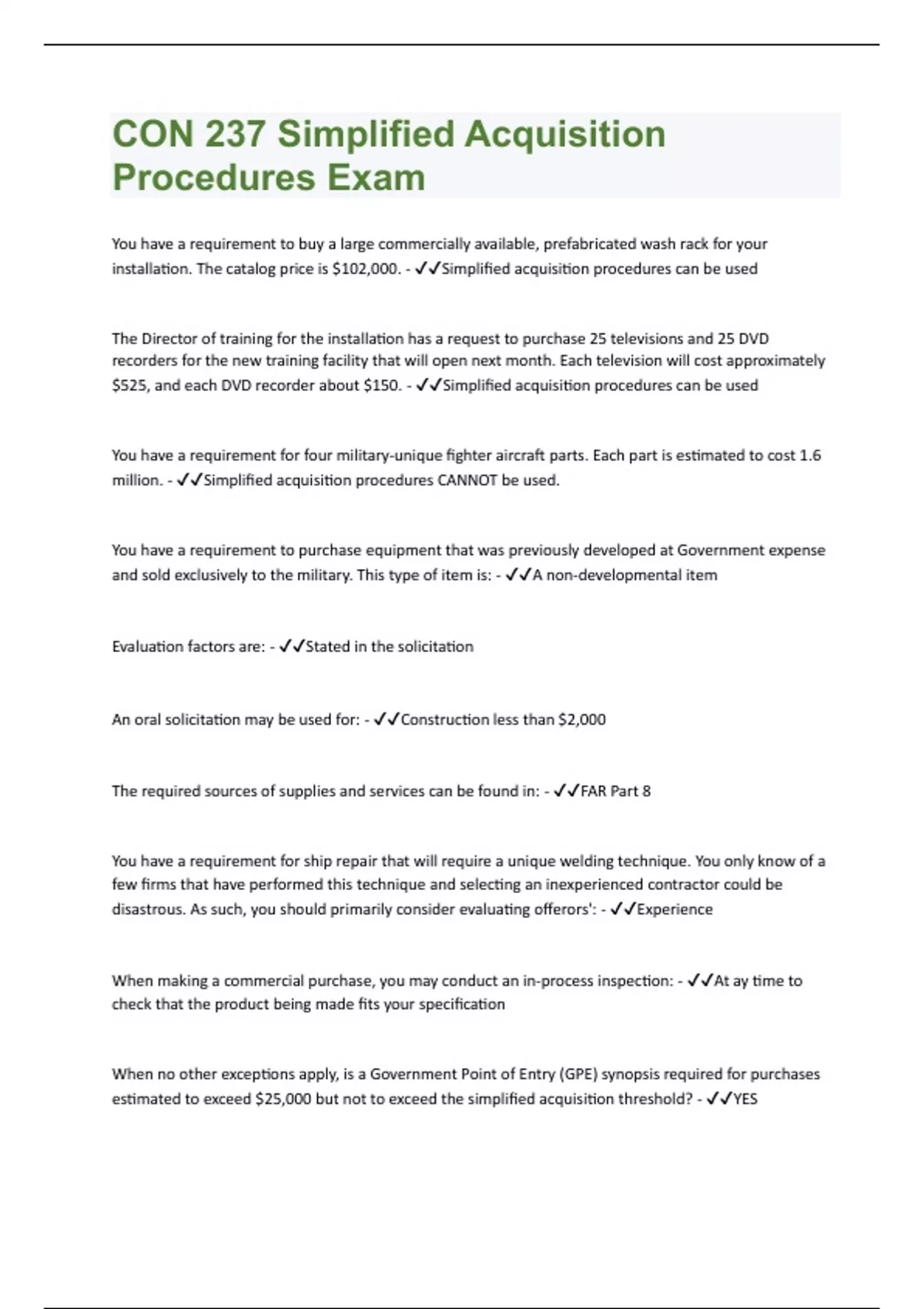 CON 237 Simplified Acquisition Procedures exam Already Passed!!
