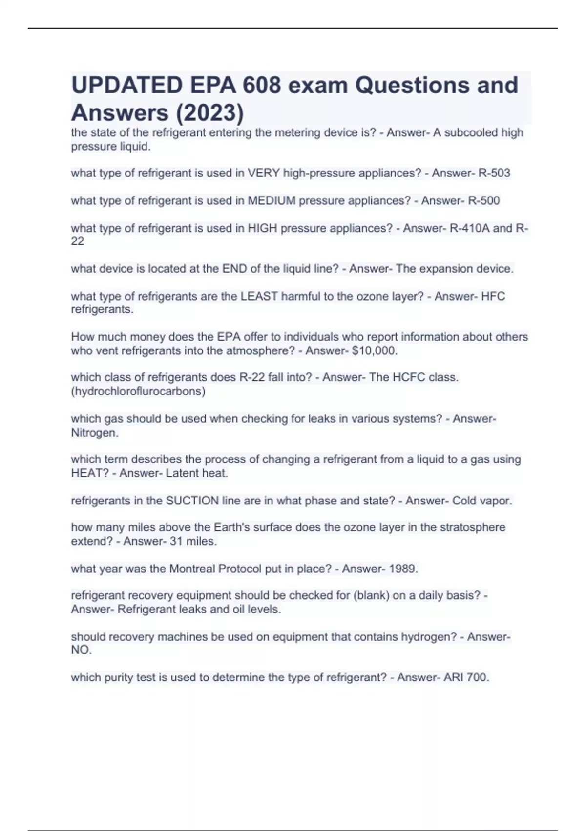 UPDATED EPA 608 exam Questions and Answers (2023)