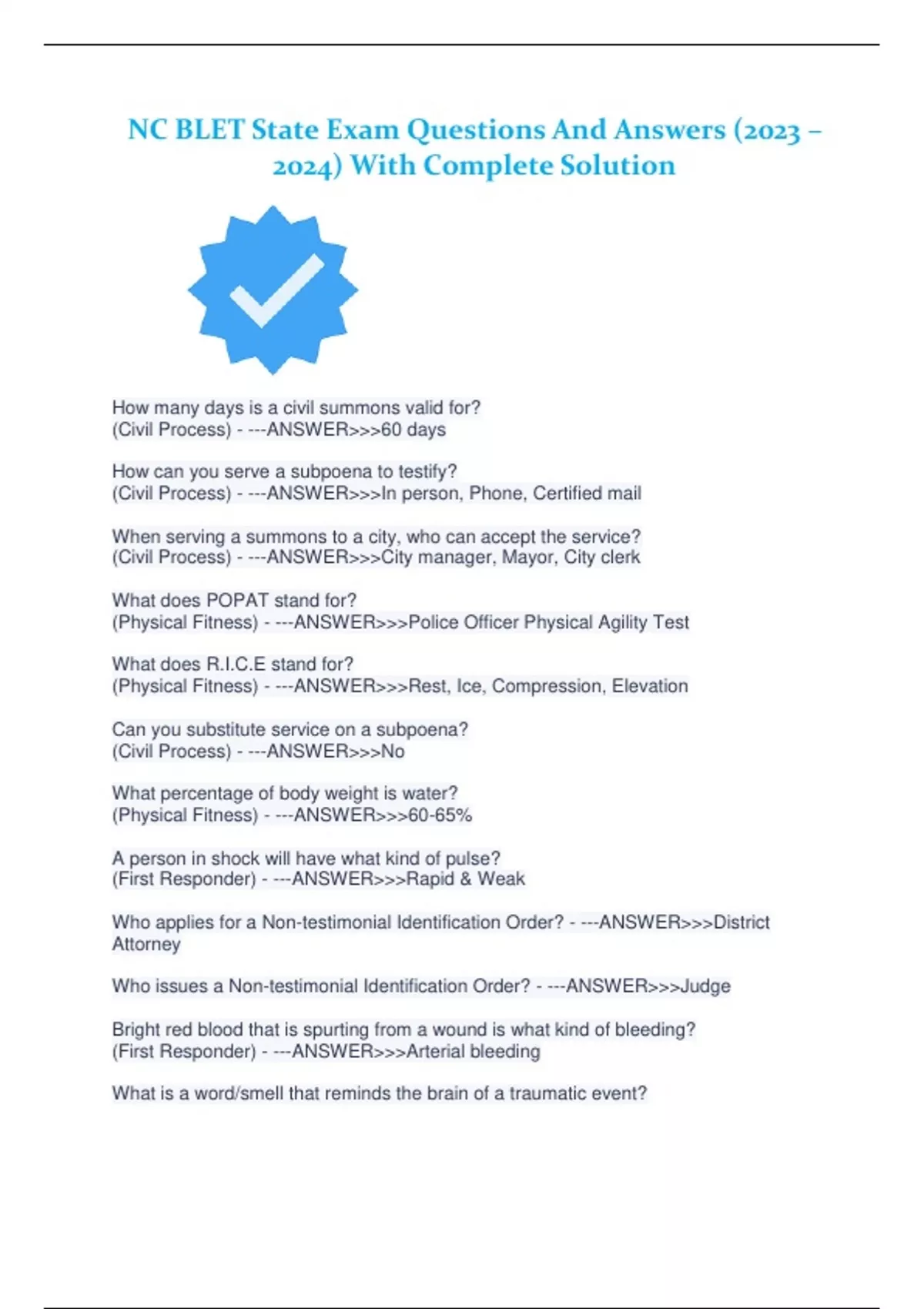 NC BLET State Exam Questions And Answers (2023 – 2024) With Complete Solution