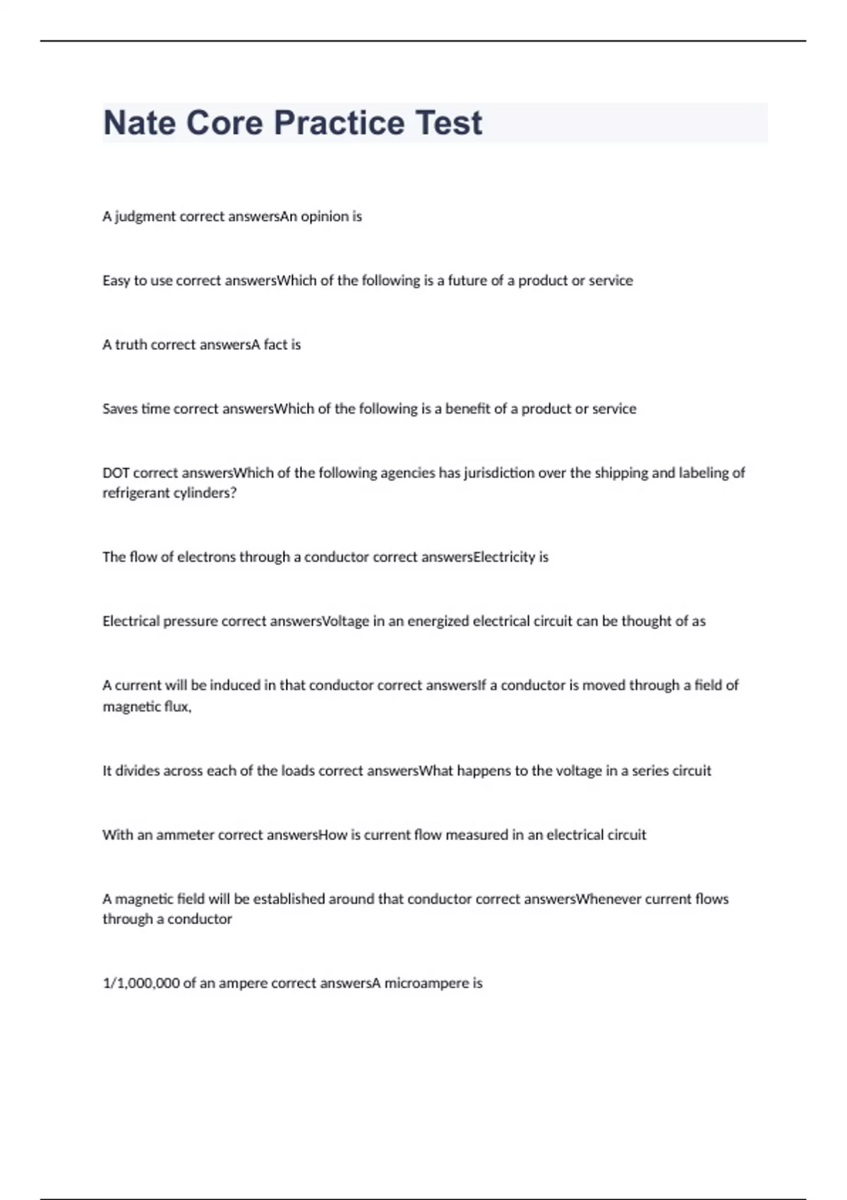 Nate Core Practice Test 2023 with 100% complete answers