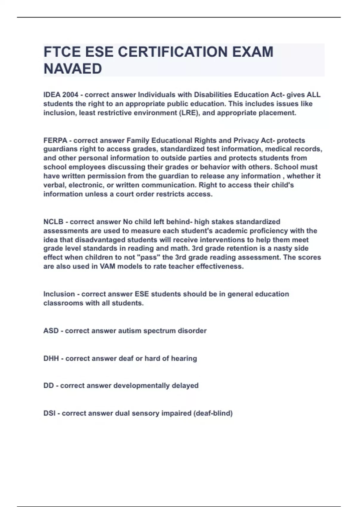 ftce ese certification exam navaed|updatedampverifie