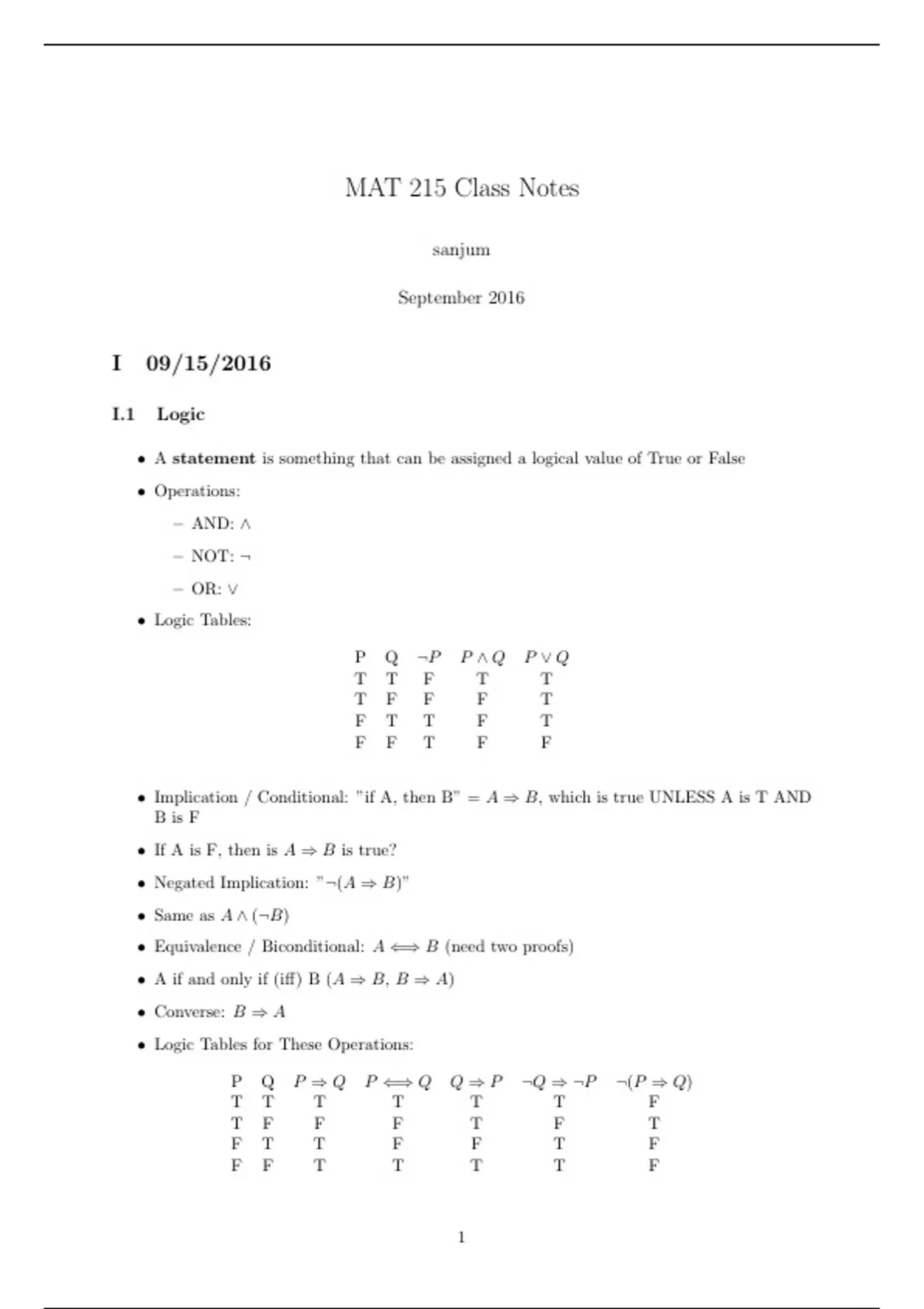 MAT 215 Class Notes