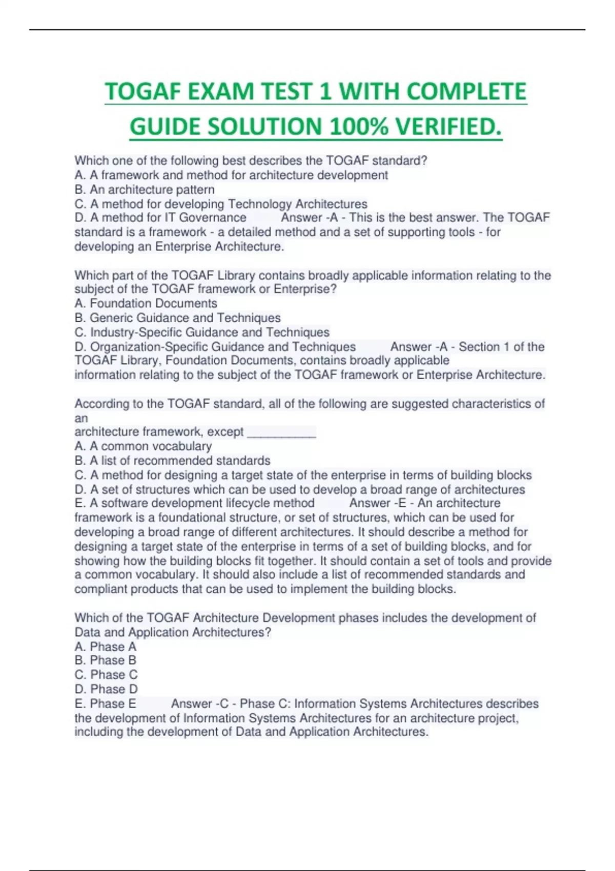TOGAF EXAM TEST 1 WITH COMPLETE GUIDE SOLUTION 100% VERIFIED.TOGAF EXAM TEST 1 WITH COMPLETE GUIDE SOLUTION 100% VERIFIED.TOGAF EXAM TEST 1 WITH COMPLETE GUIDE SOLUTION 100% VERIFIED.TOGAF EXAM TEST 1 WITH COMPLETE GUIDE SOLUTION 100% VERIFIED.TOGAF EXAM TEST 1 WITH COMPLETE GUIDE SOLUTION 100% VERIFIED.TOGAF EXAM TEST 1 WITH COMPLETE GUIDE SOLUTION 100% VERIFIED.TOGAF EXAM TEST 1 WITH COMPLETE GUIDE SOLUTION 100% VERIFIED.TOGAF EXAM TEST 1 WITH COMPLETE GUIDE SOLUTION 100% VERIFIED.