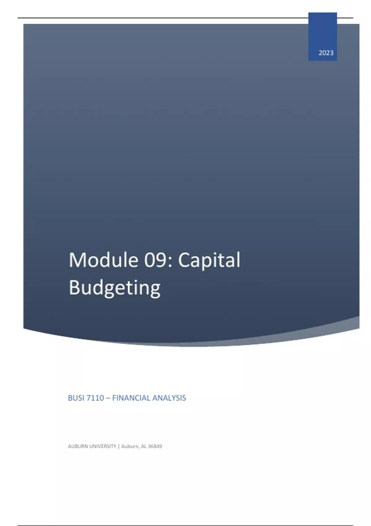 BUSI 7110 Class Notes - MODULE 09: CAPITAL BUDGETING