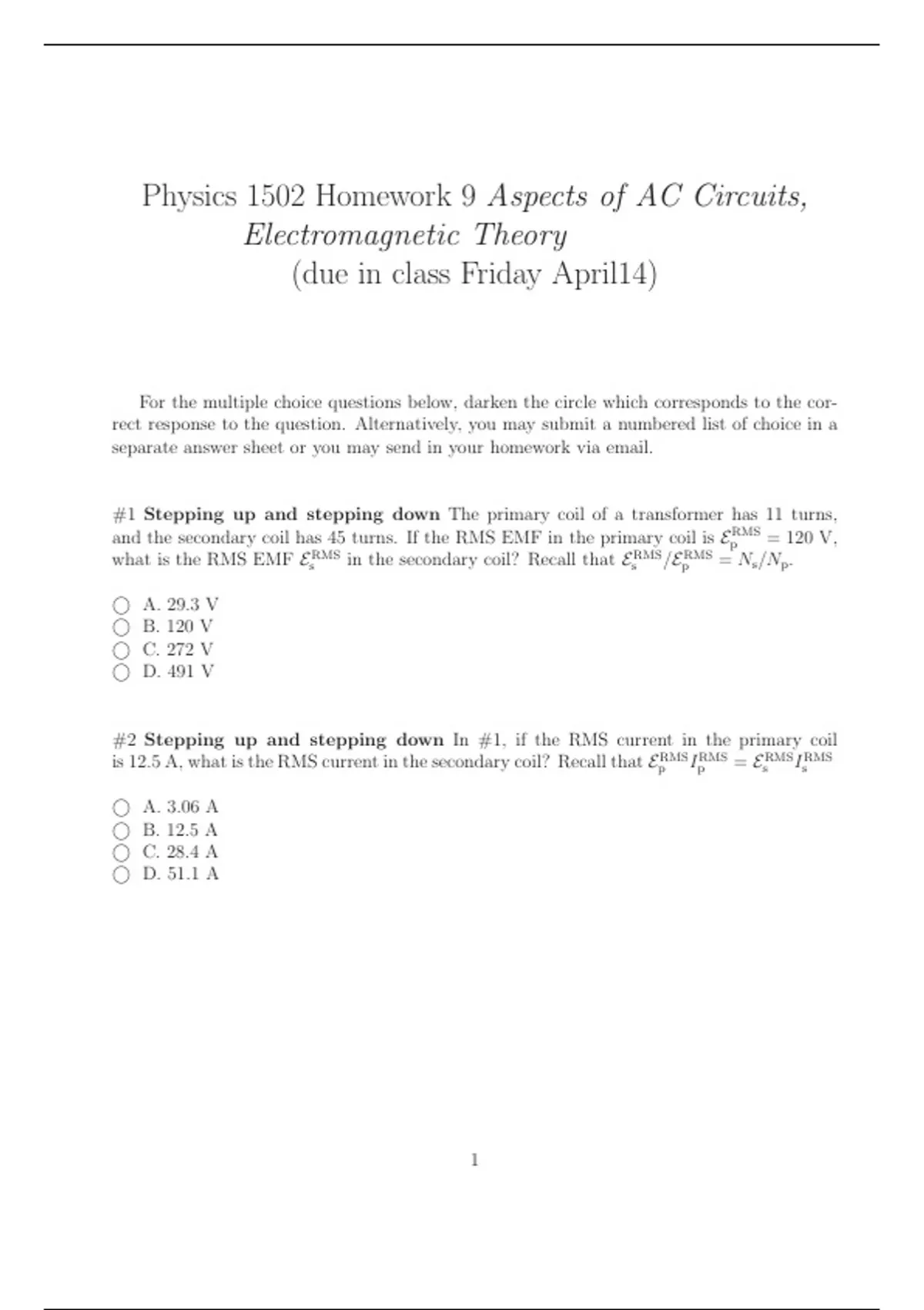 Summary of 7 pages for the course PHYS 1502 at Youngstown State University (physics 2)