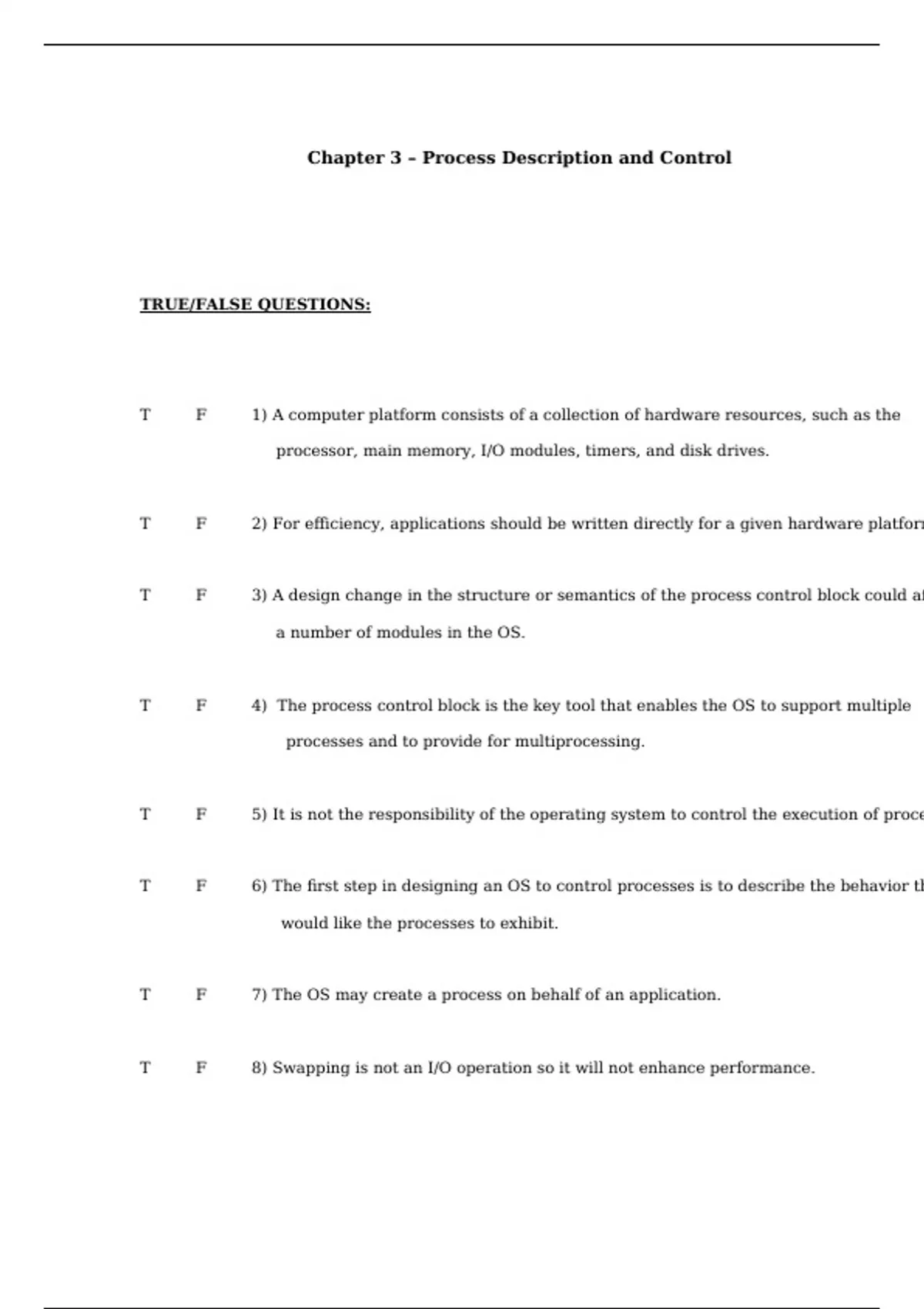 T F 11) The OS may suspend a process if it detects or suspects a problem.