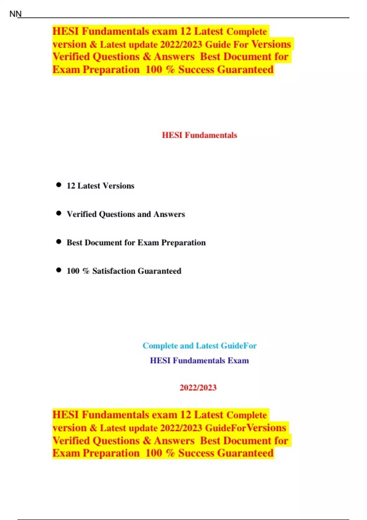 HESI Fundamentals Updated Versions 1-12 With Rationale Answers study guide A+