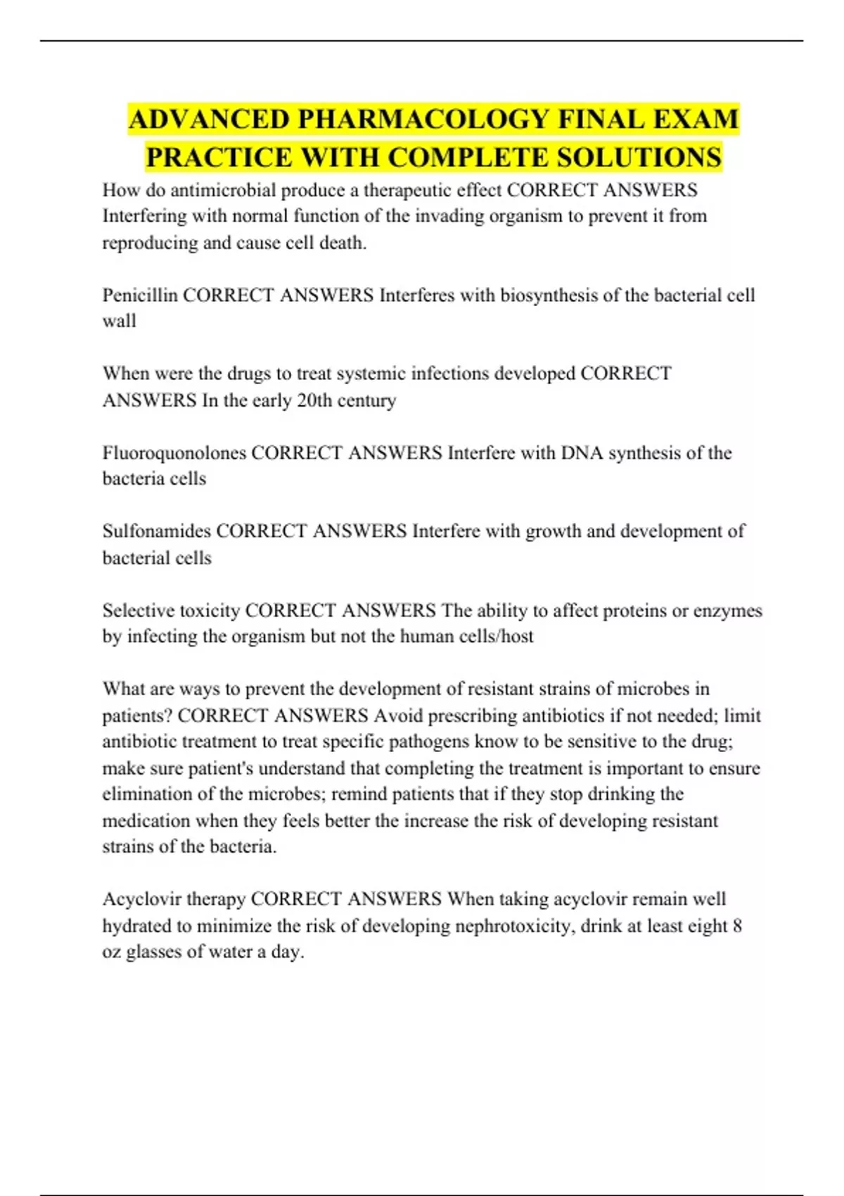 ADVANCED PHARMACOLOGY FINAL EXAM PRACTICE WITH COMPLETE SOLUTIONS
