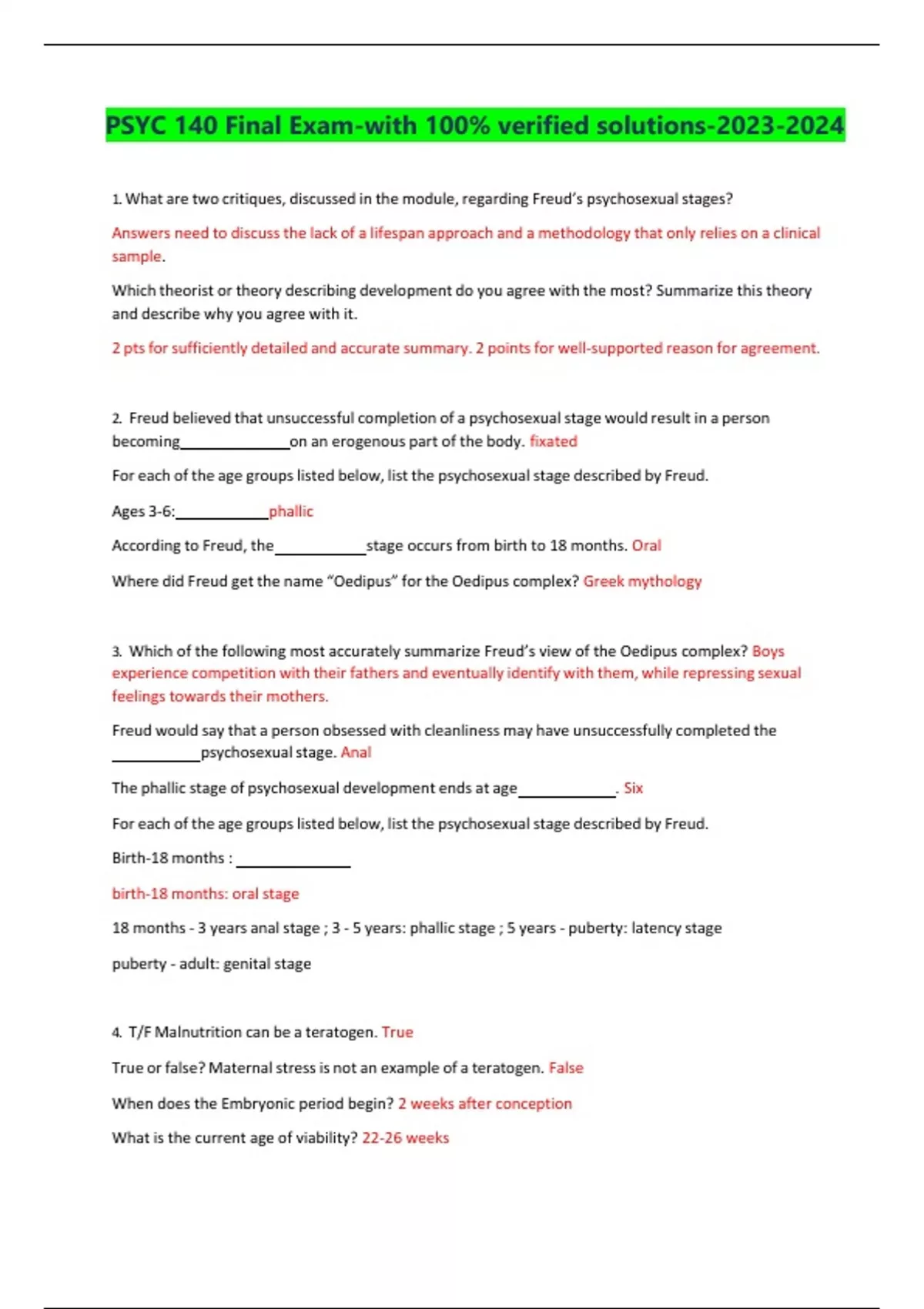 PSYC 140 Final Exam-with 100% verified solutions-