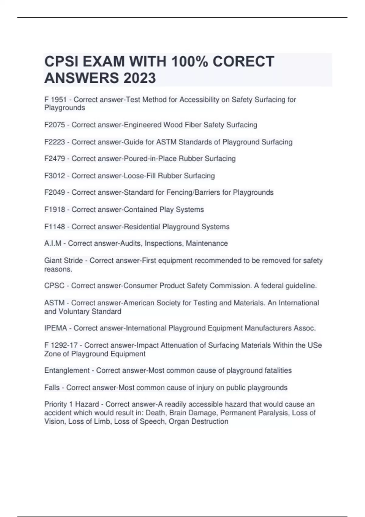 CPSI EXAM QUESTIONS WITH 100% CORRECT ANSWERS 2023