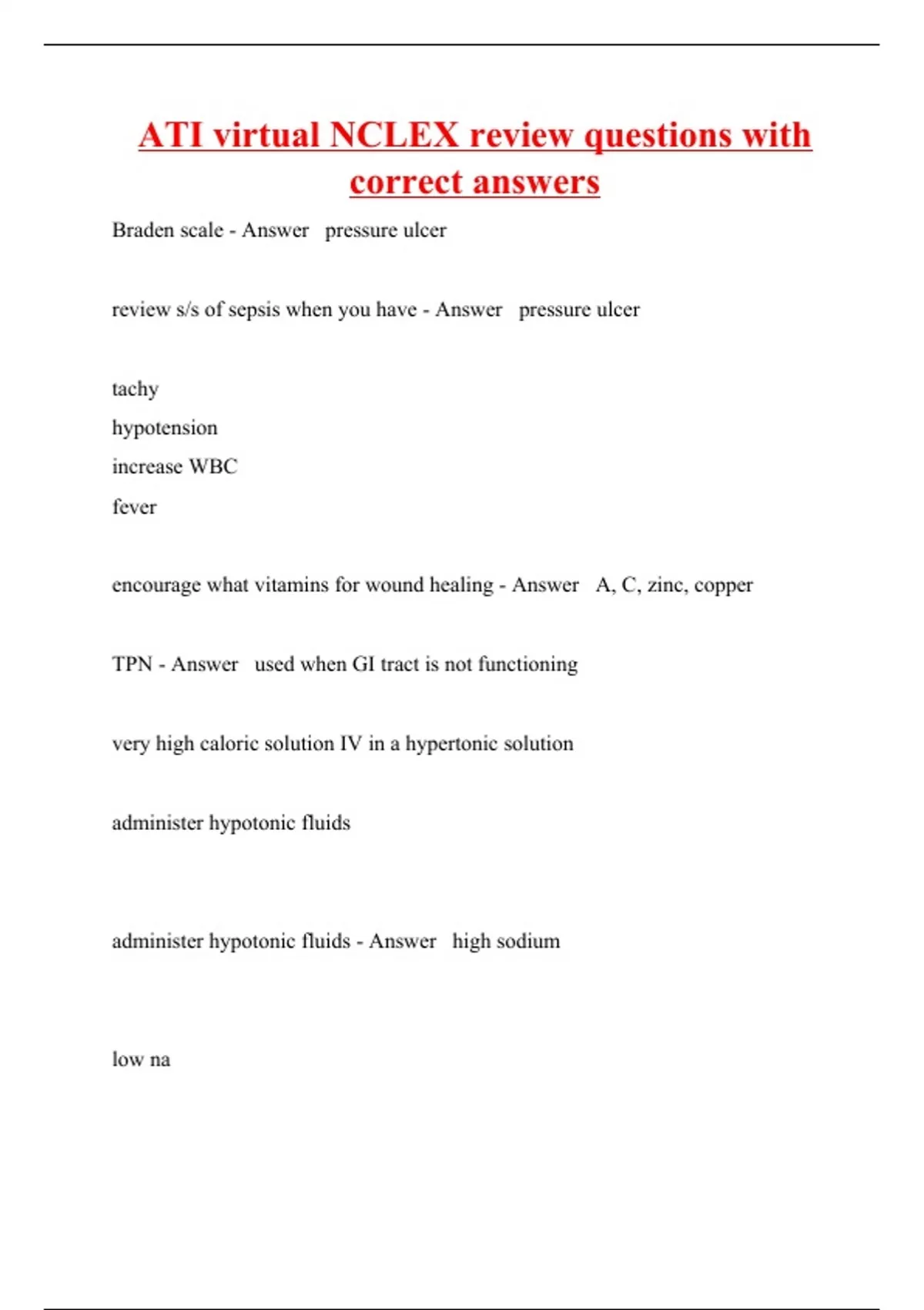 ATI virtual NCLEX review questions with correct answers