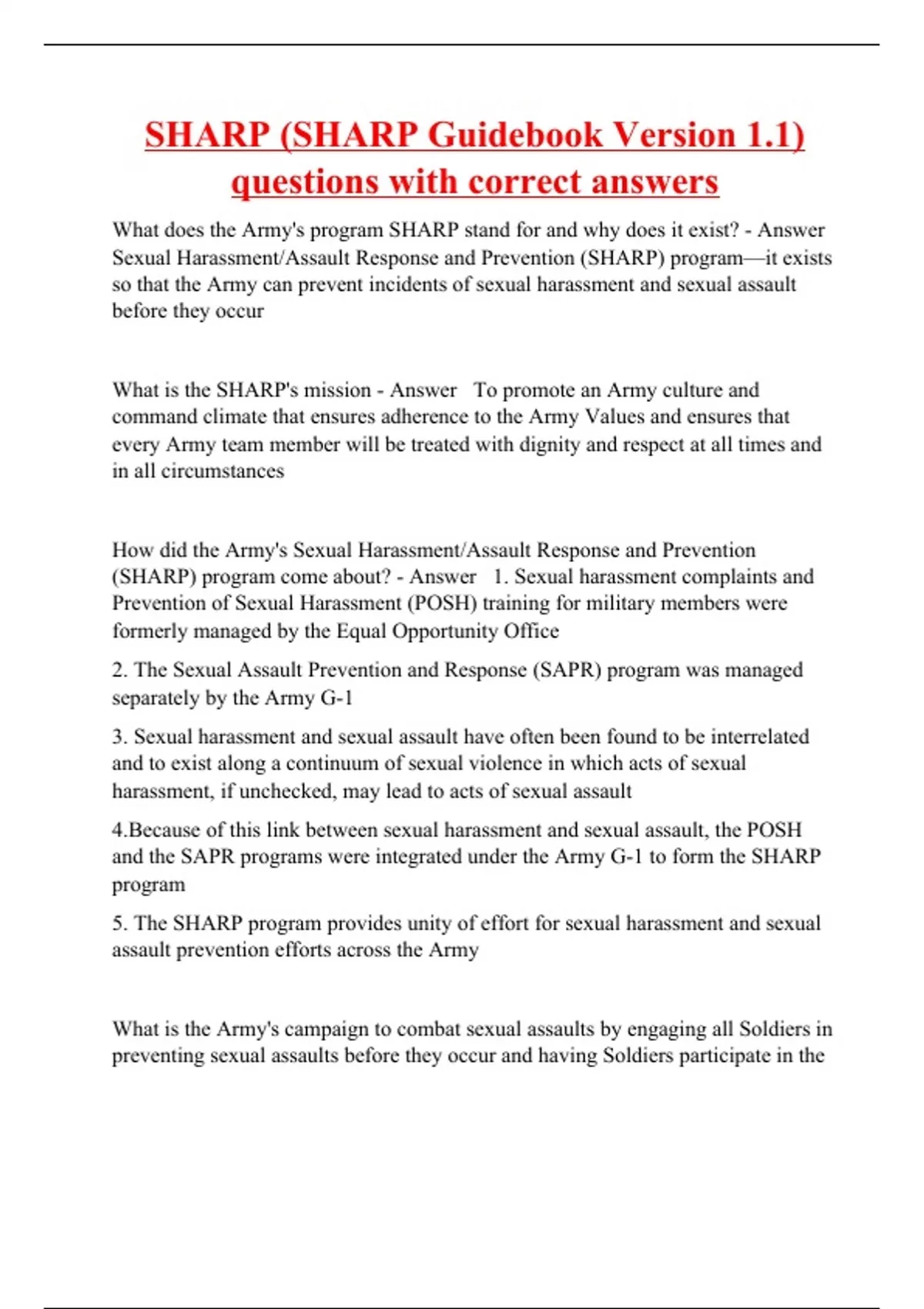 The Sexual Harassment/Assault Response and Prevention Program (SHARP) TESTS BUNDLE SET