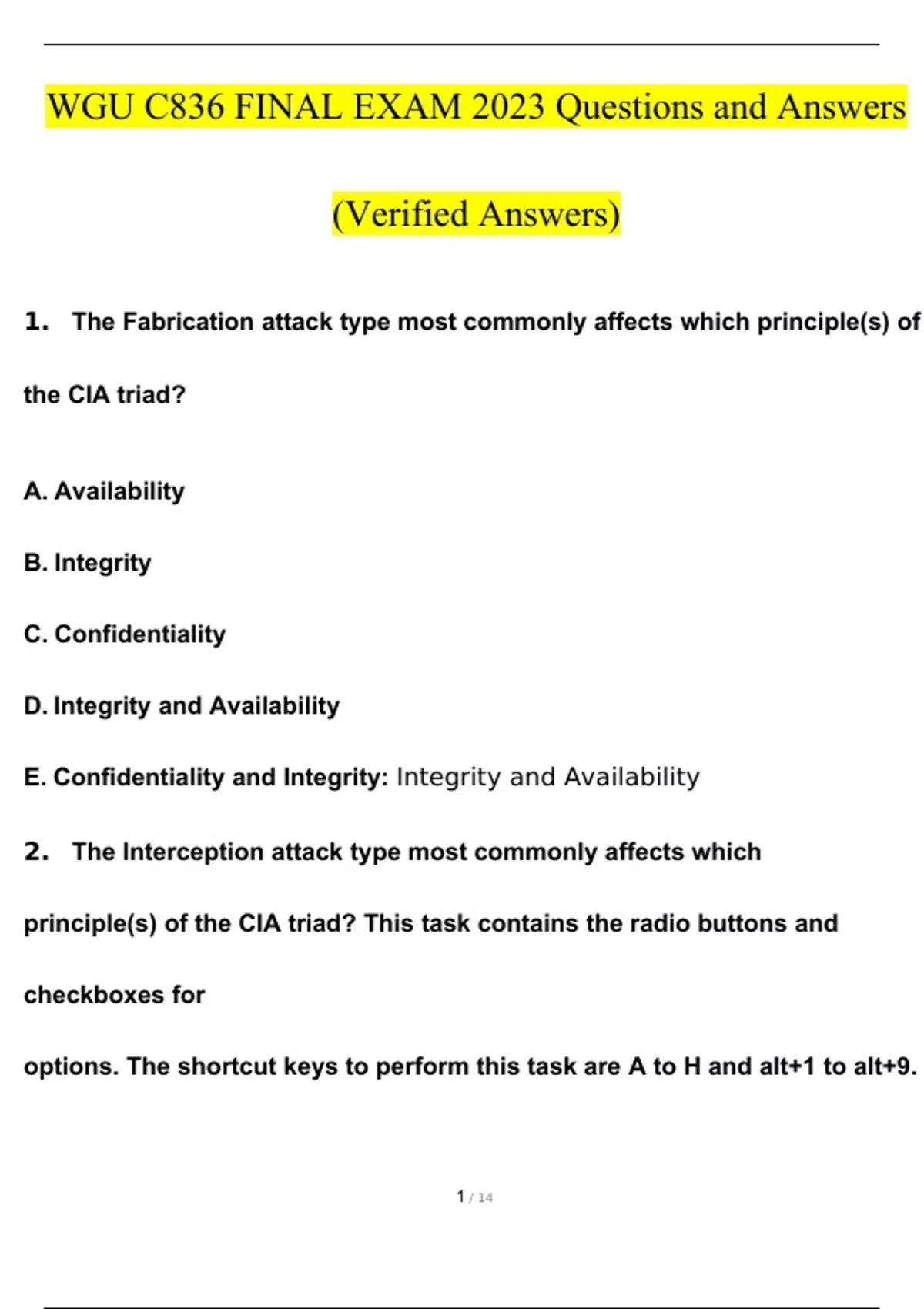 WGU C836 Fundamentals of Information Security EXAM 2023 STUDY BUNDLE PACK SOLUTION (Verified Answers)