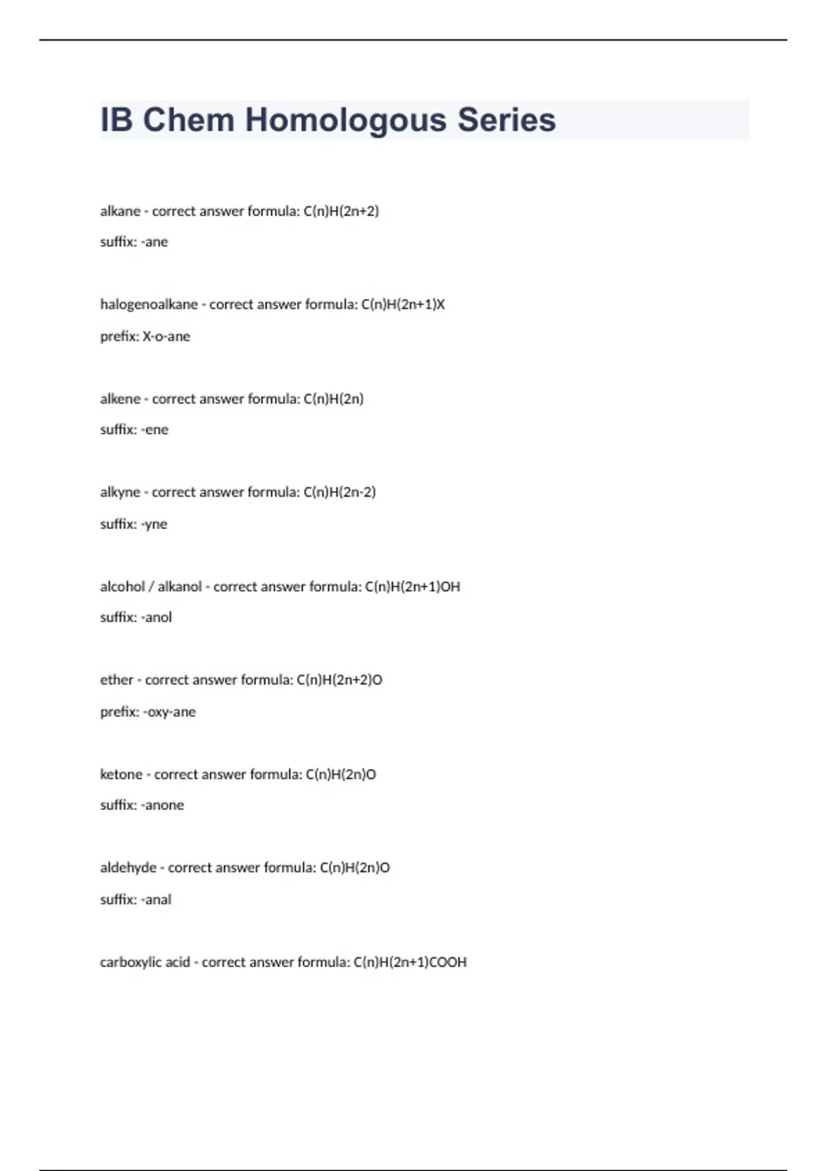 IB Chem Homologous Series.