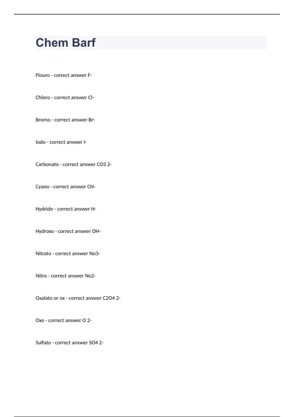 Chem Barf question annd answers graded A+ 2023 passed