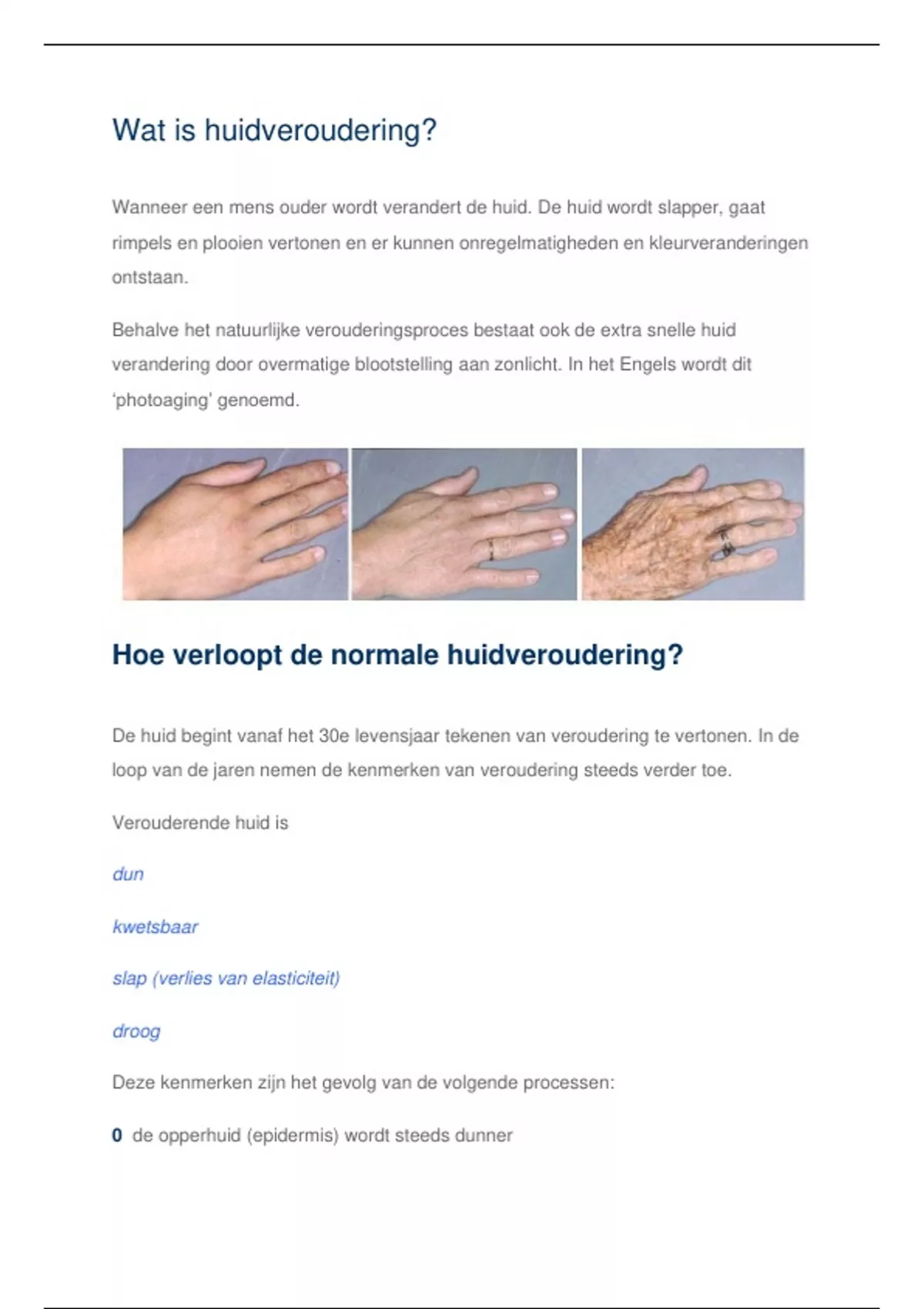 elasticiteit. De verouderende huid vertoont dan rimpels en het typische