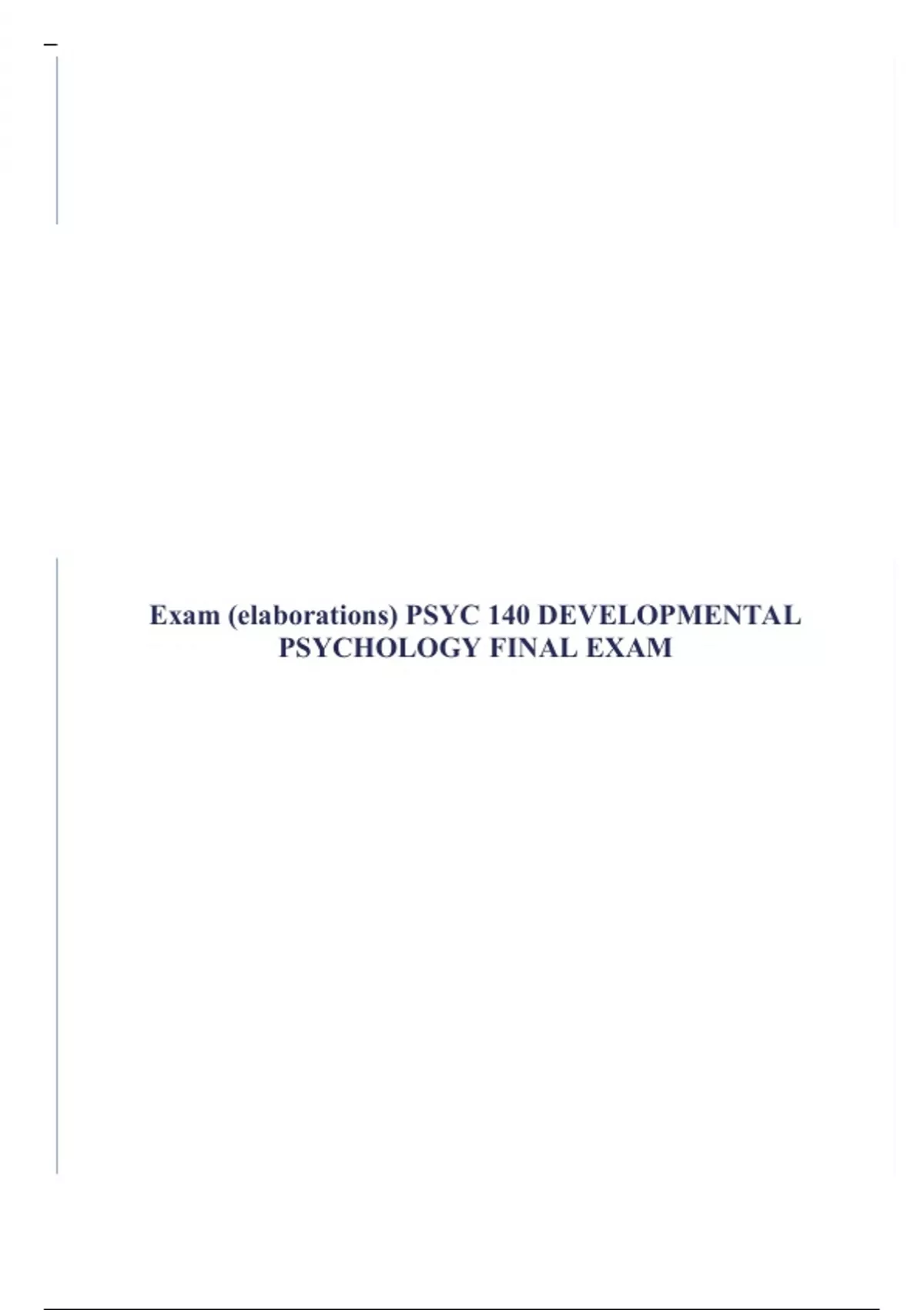 Exam (elaborations) PSYC 140 DEVELOPMENTAL PSYCHOLOGY FINAL EXAM