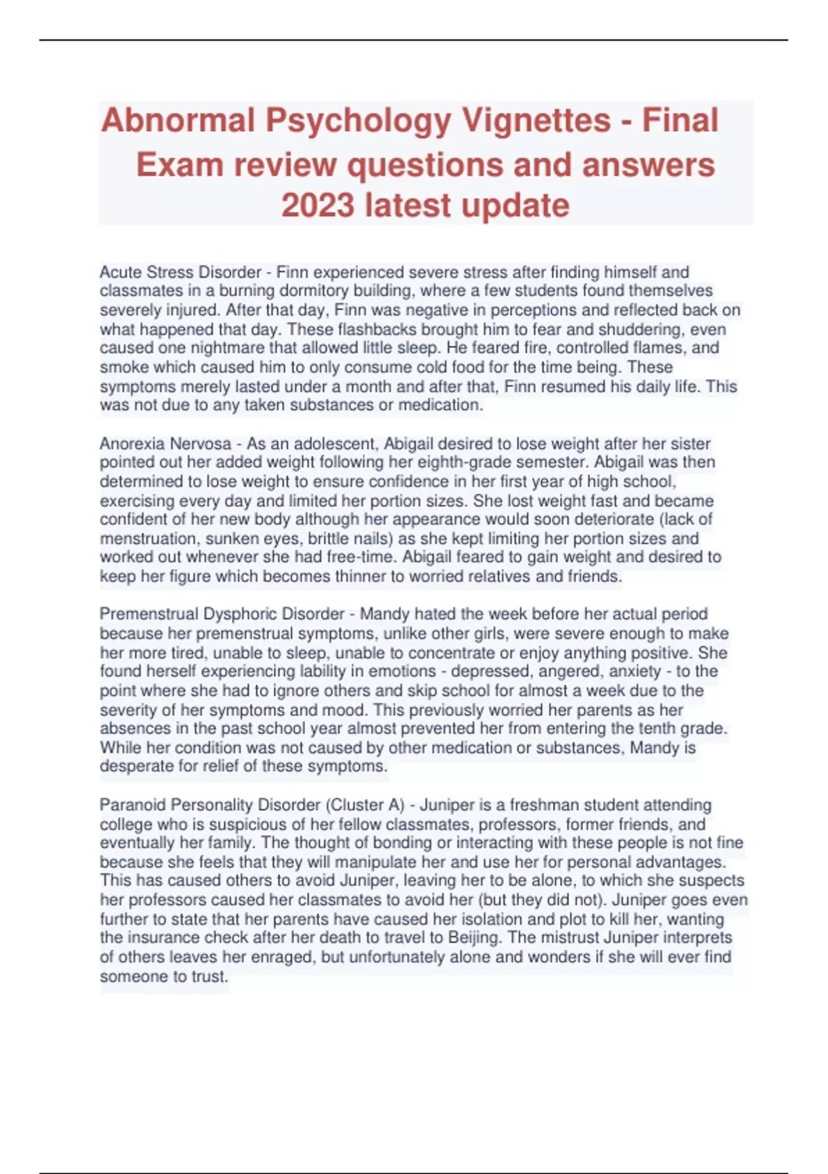 abnormal psychology vignettes final exam review qu