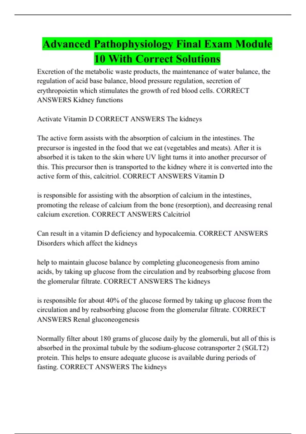 Advanced Pathophysiology Final Exam Module 10 With Correct Solutions