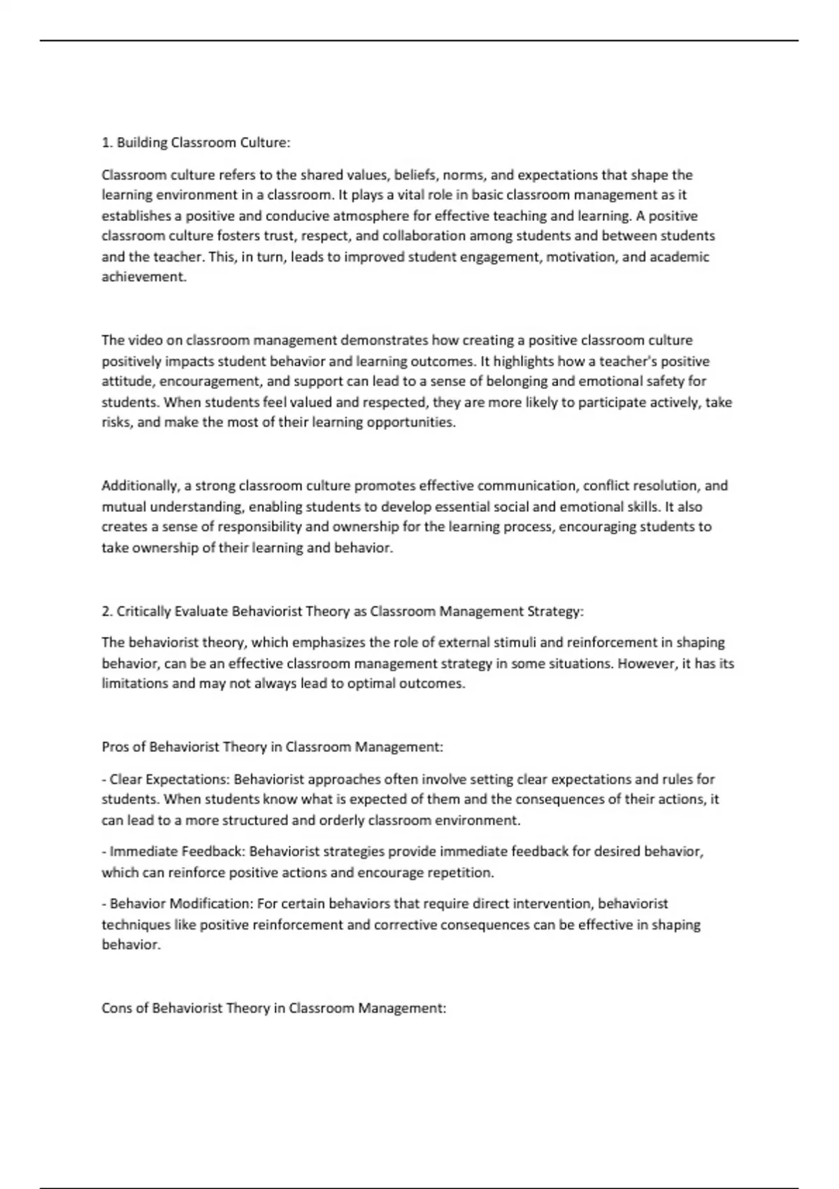 2. Critically Evaluate Behaviorist Theory as Classroom Management Strategy:
