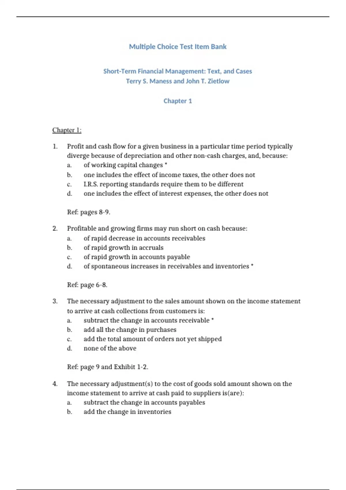 The Test Bank for [Short-Term Financial Management,Maness,3e] is designed to provide you with an unparalleled edge in your exams. It's packed with practice exam questions, tailored to mimic official exams, and includes detailed answers for comprehensive learning. This is your roadmap to passing the class in .
