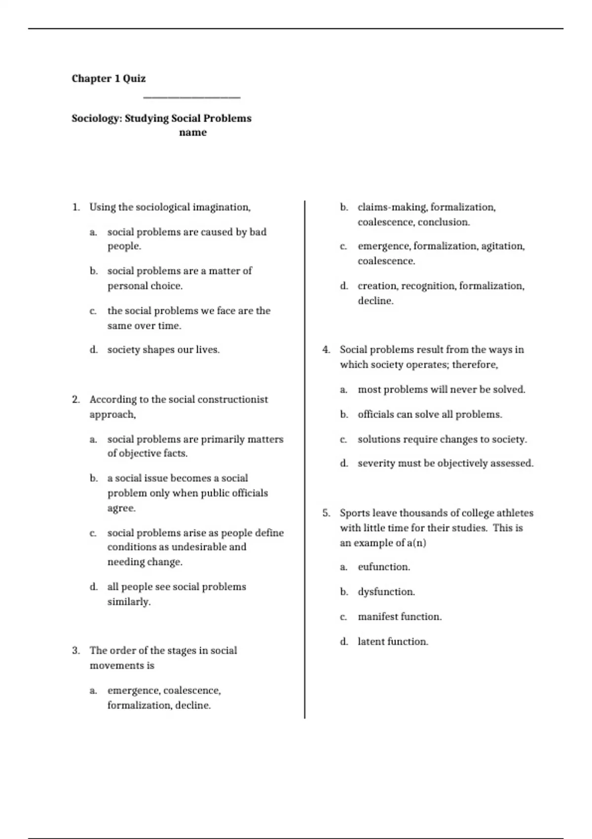 d. society shapes our lives. 4. Social problems result from the ways in