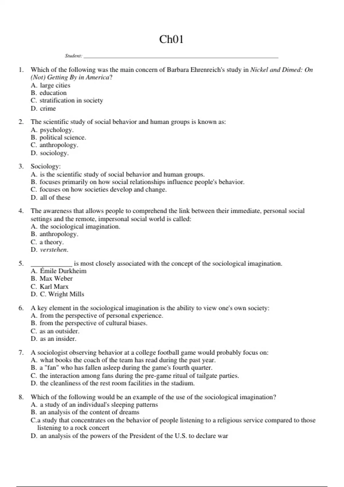 5. ____________ is most closely associated with the concept of the sociological imagination.