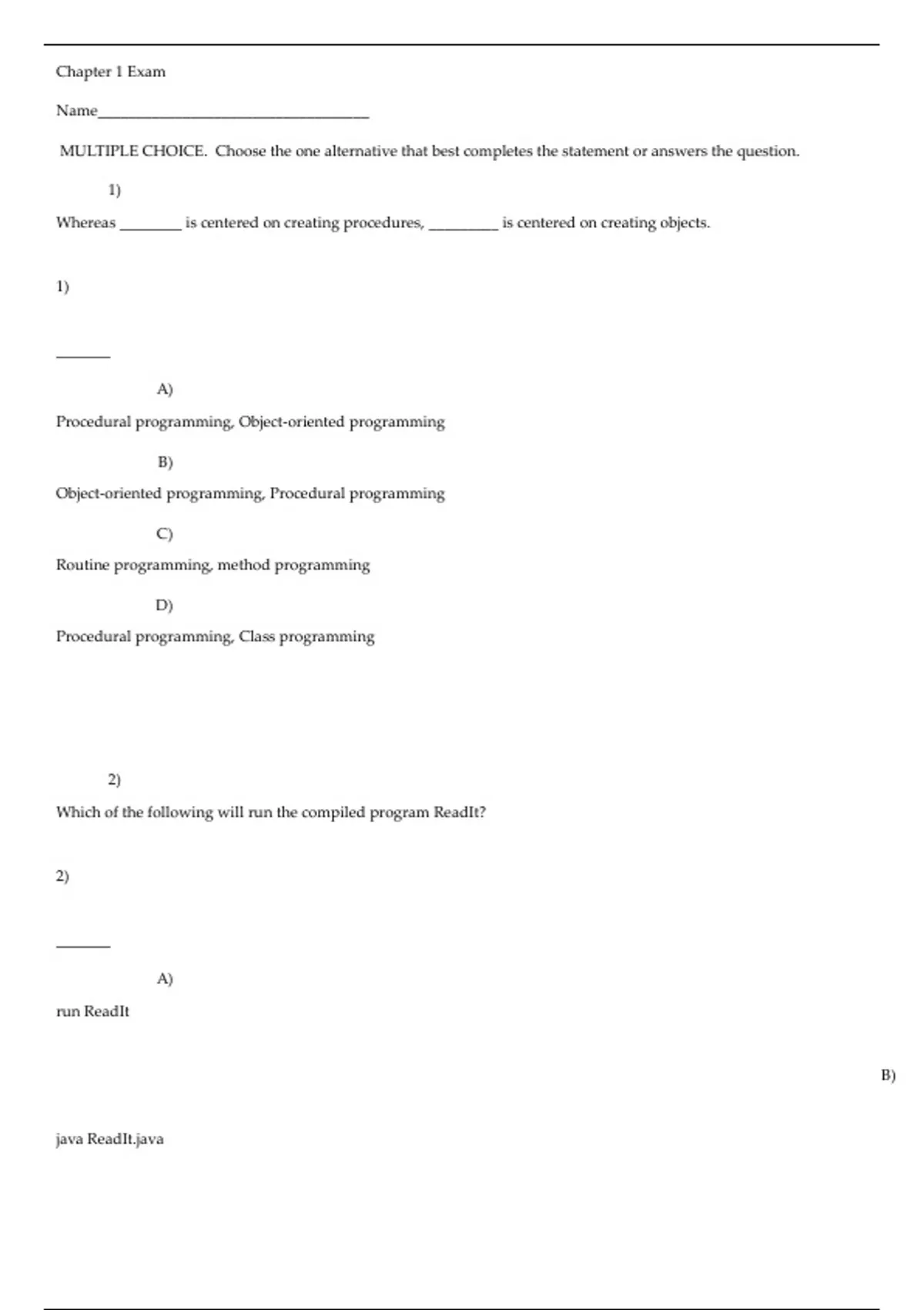 Chapter 1 Exam
