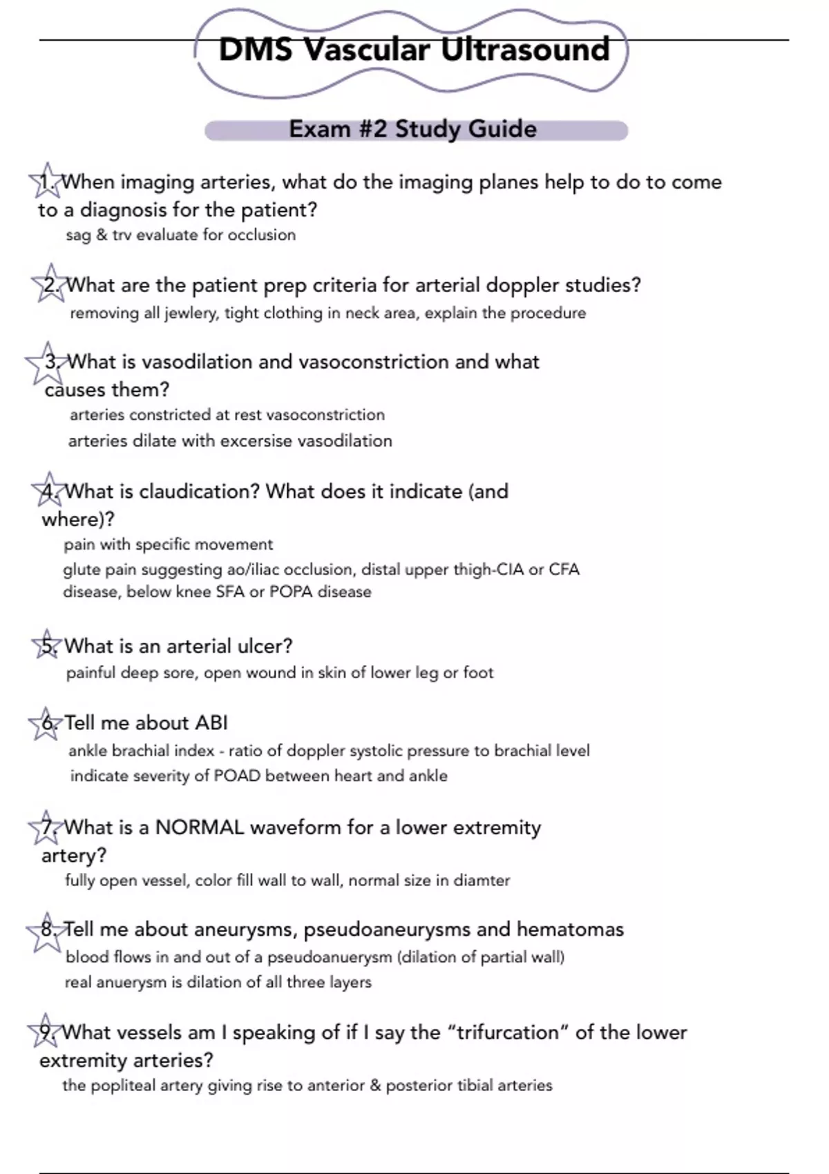 vascular ultrasound exam 2 study guide