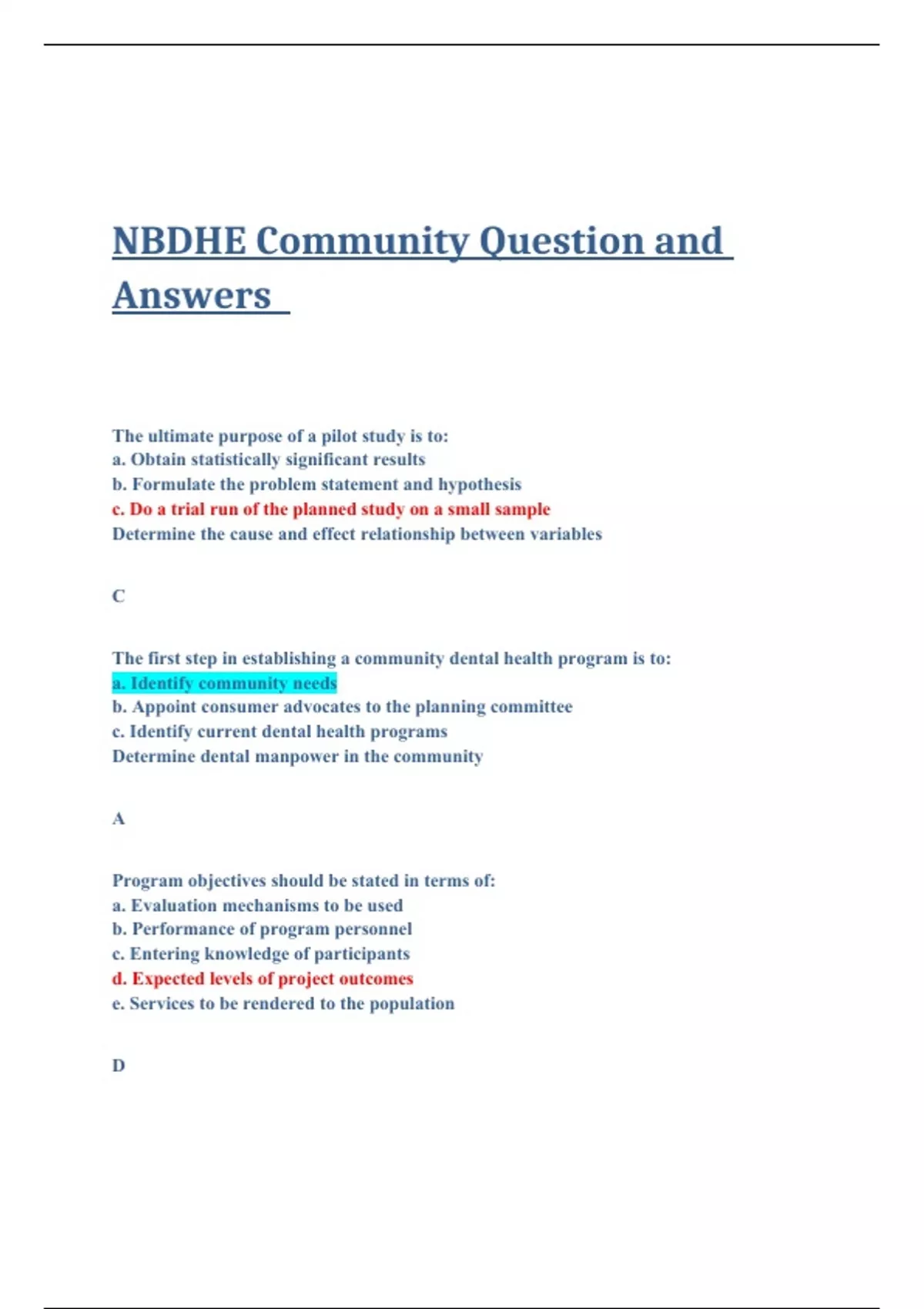 NBDHE Community Question and Answers.
