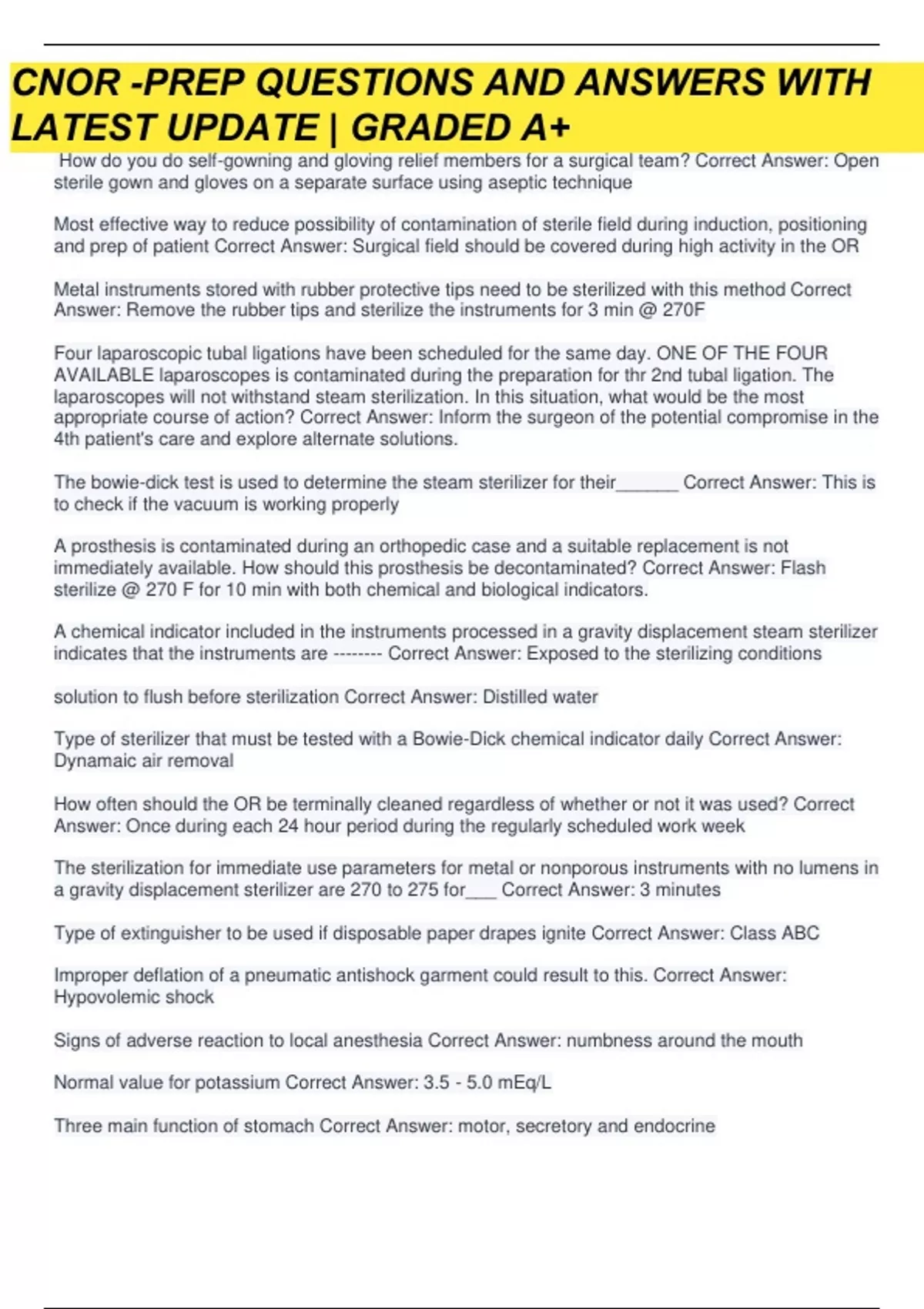 CNOR-Prep Questions And Answers With Latest Updates Graded A+