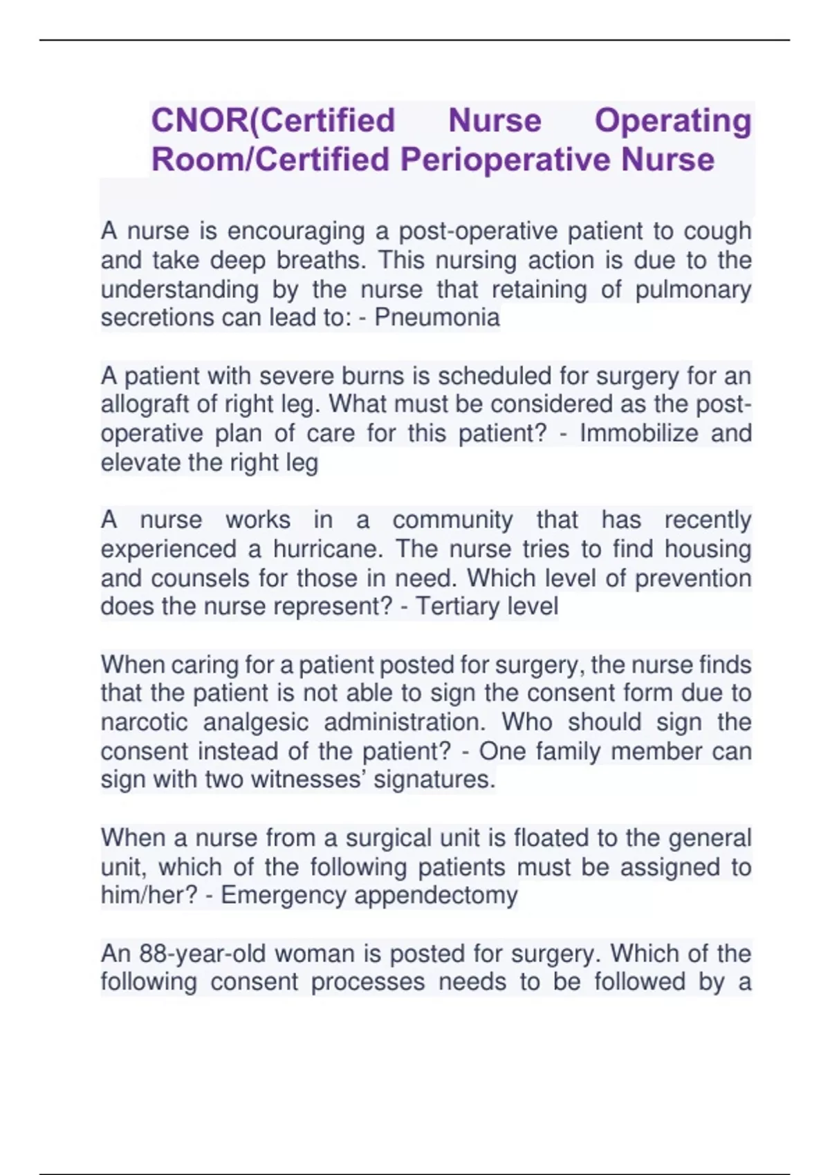 CNOR(Certified Nurse Operating Room/Certified Perioperative Nurse Q&A