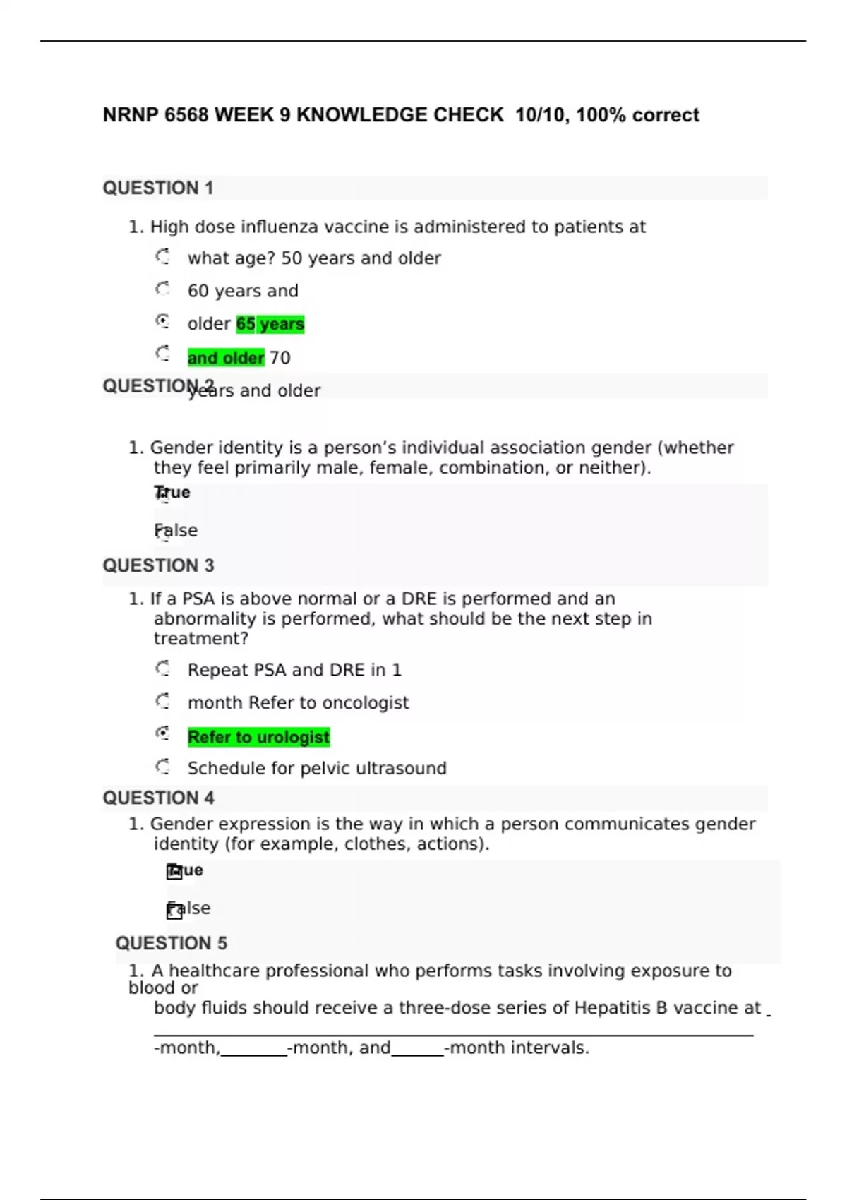 FalseNRNP 6568 WEEK 9 KNOWLEDGE CHECK 10/10, 100% correct