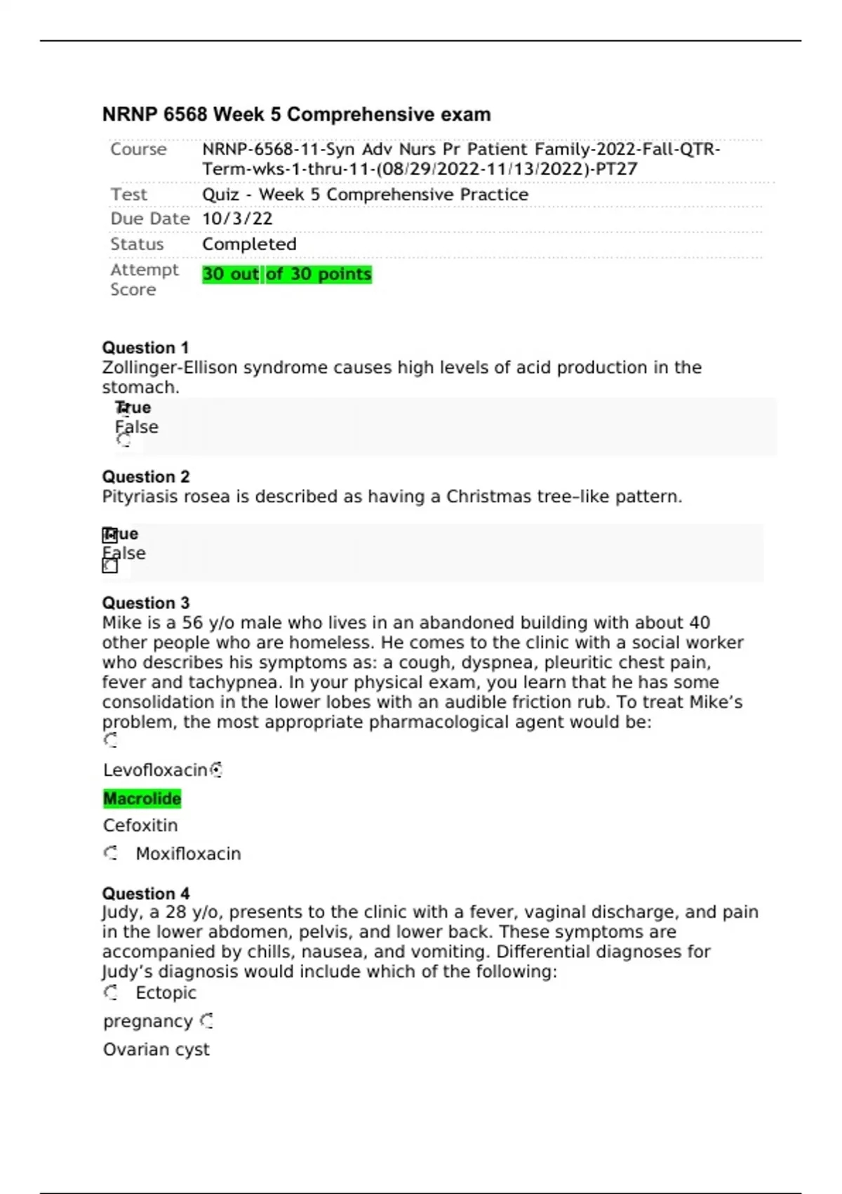 NRNP 6568-11 Week 5 Quiz - Comprehensive Practice