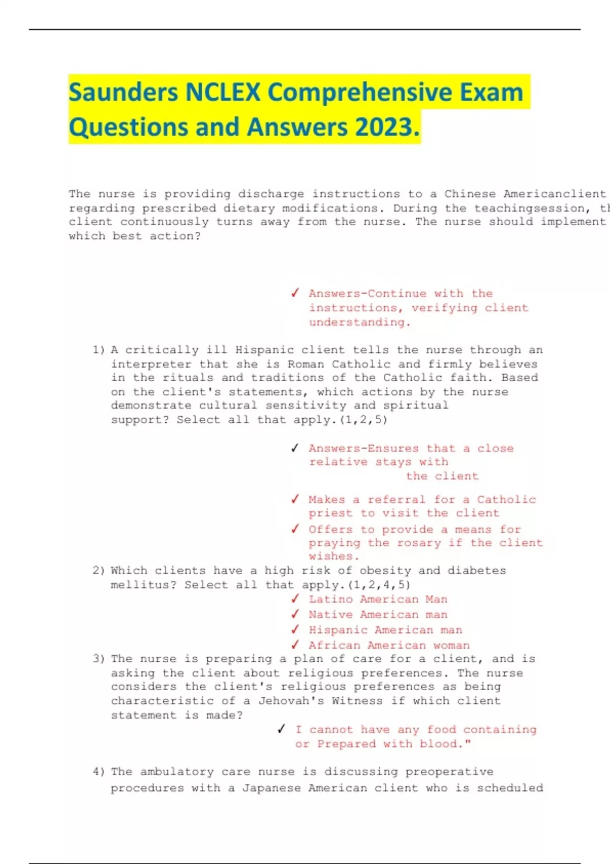 Saunders NCLEX Comprehensive Exam Questions and Answers 2023.