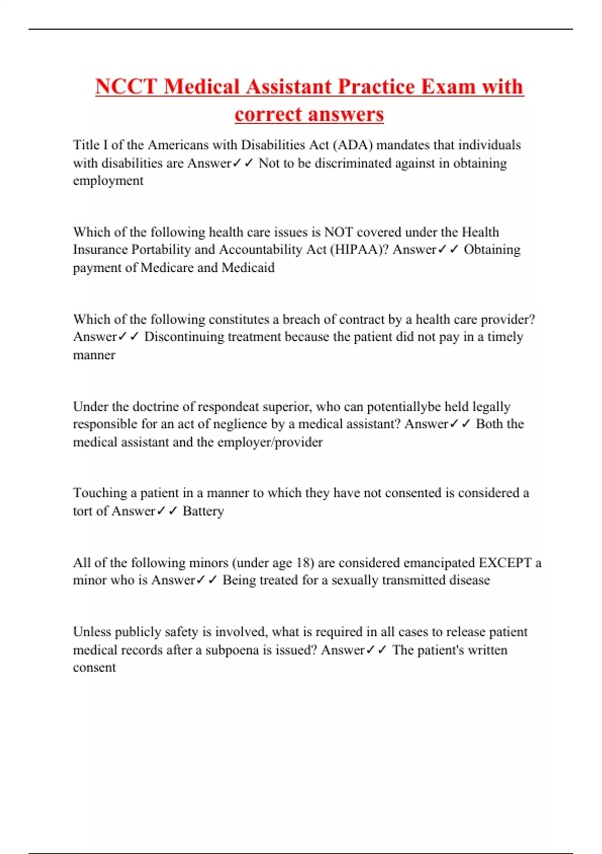 ncct medical assistant practice exam with correct