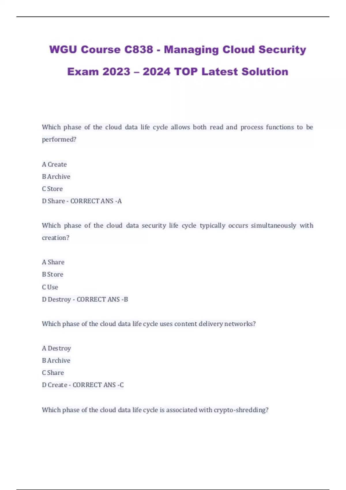 WGU Course C838 - Managing Cloud Security Exam 2023 – 2024 TOP Latest Solution.