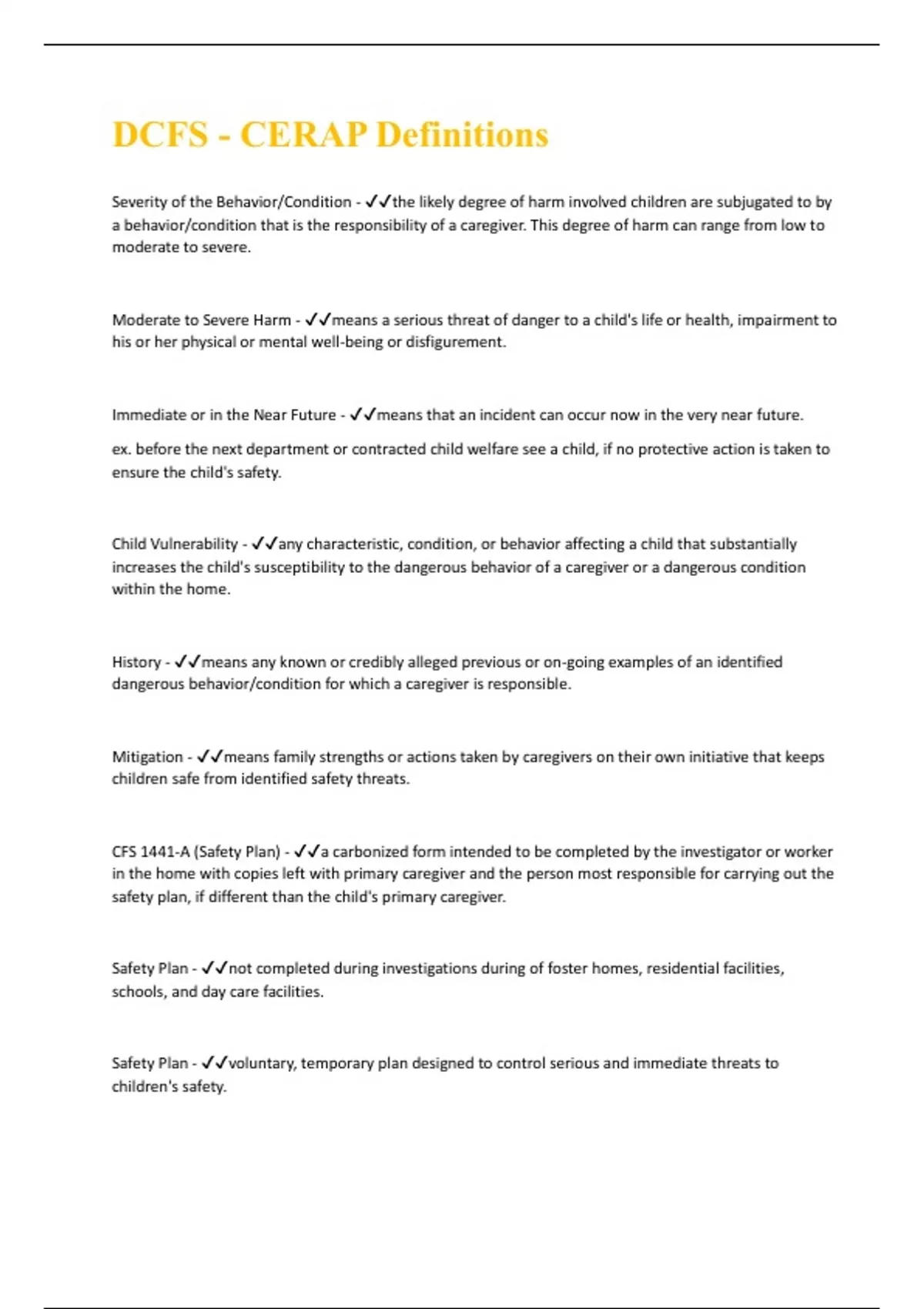 DCFS - CERAP Definitions | Questions and Answers(A+ Solution guide)