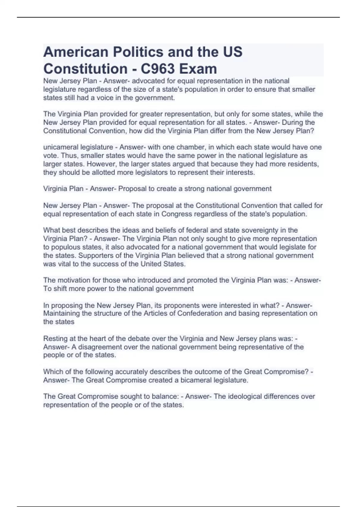 American Politics and the US Constitution - C963 Exam