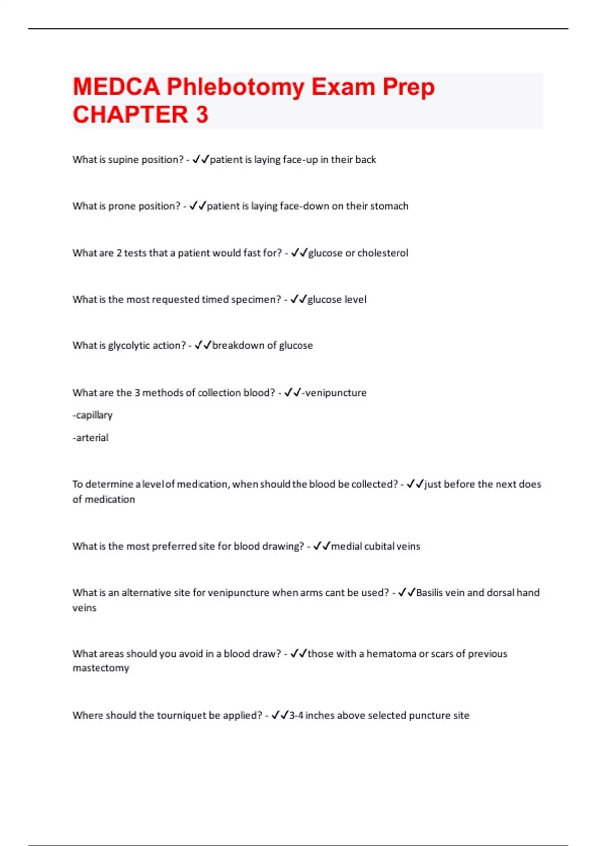MEDCA Phlebotomy Exam Prep CHAPTER 3 | Questions with 100 % correct answers | Verified