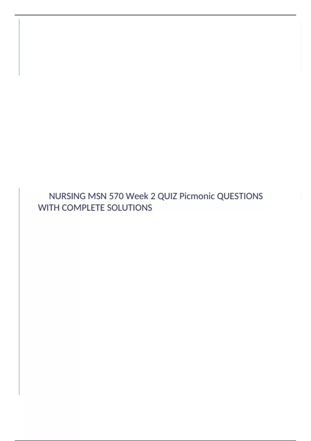 NURSING MSN 570 Week 2 QUIZ Picmonic QUESTIONS WITH COMPLETE SOLUTIONS