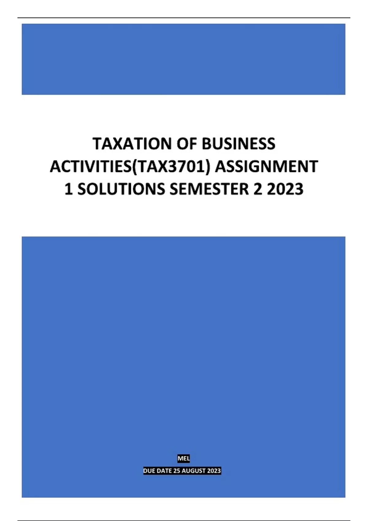 TAX3701 ASSIGNMENT 1 SOLUTIONS SEMESTER 2 2023.PASS GUARANTEED.