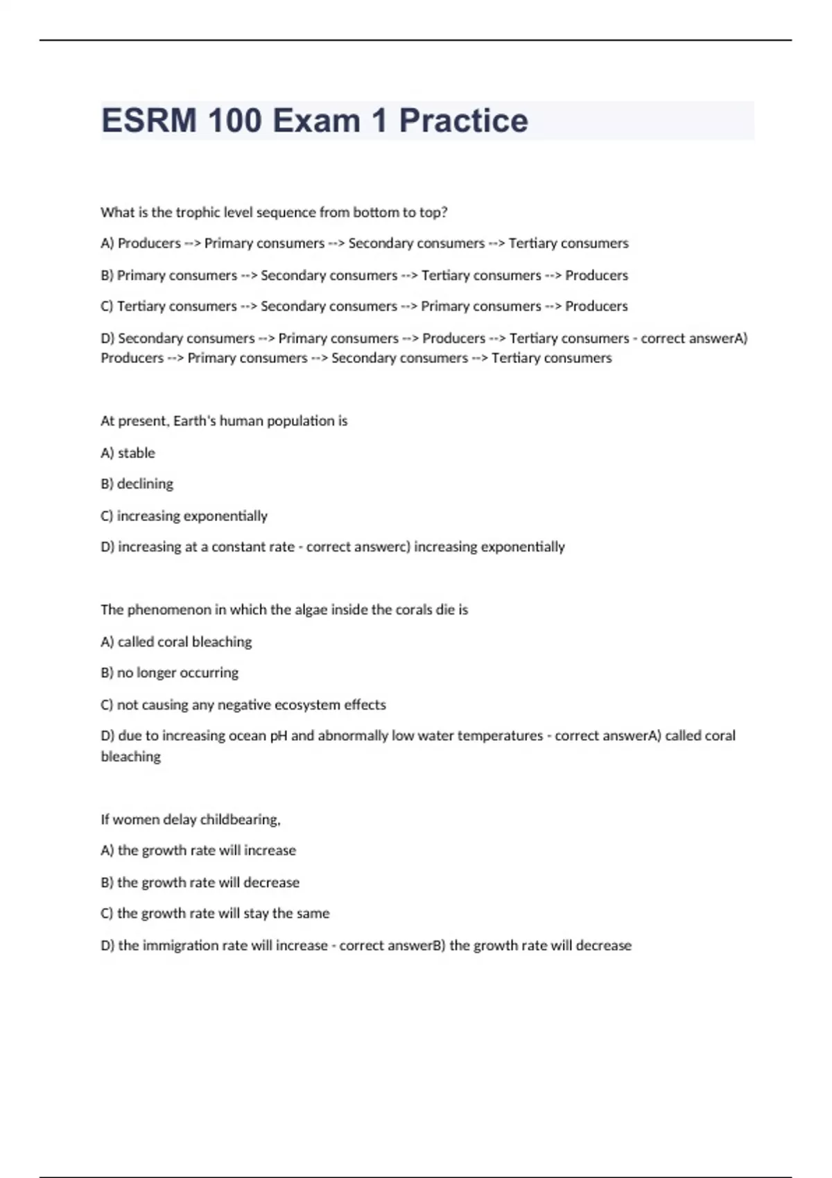 esrm 100 exam 2023 with 100 correct answers